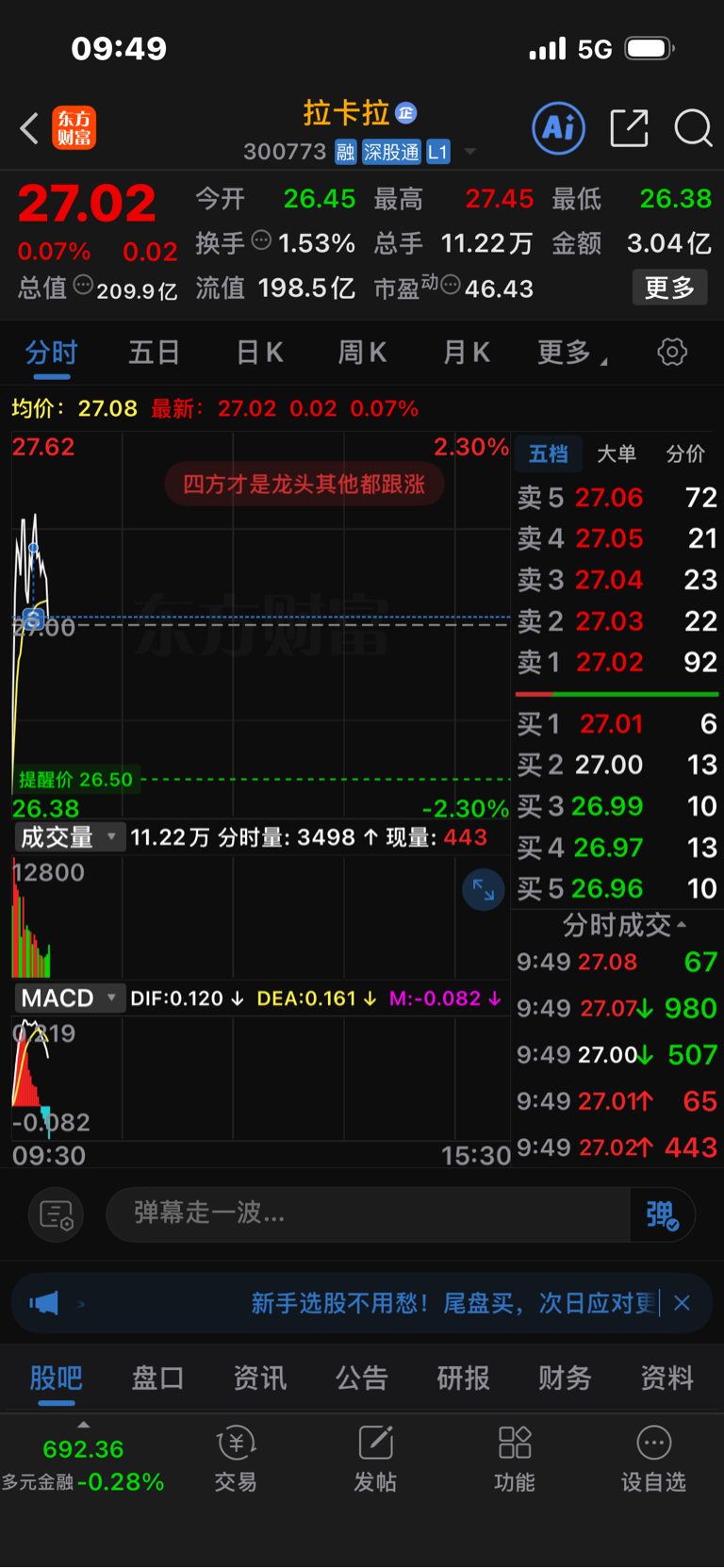 $拉卡拉(SZ300773)$ 减仓完毕,它吗的勾庄就在我成本线徘徊