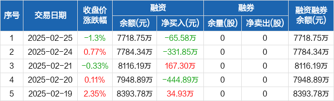 倍杰特:融资净偿还65.58万元,融资余额7718.75万元(02-25)