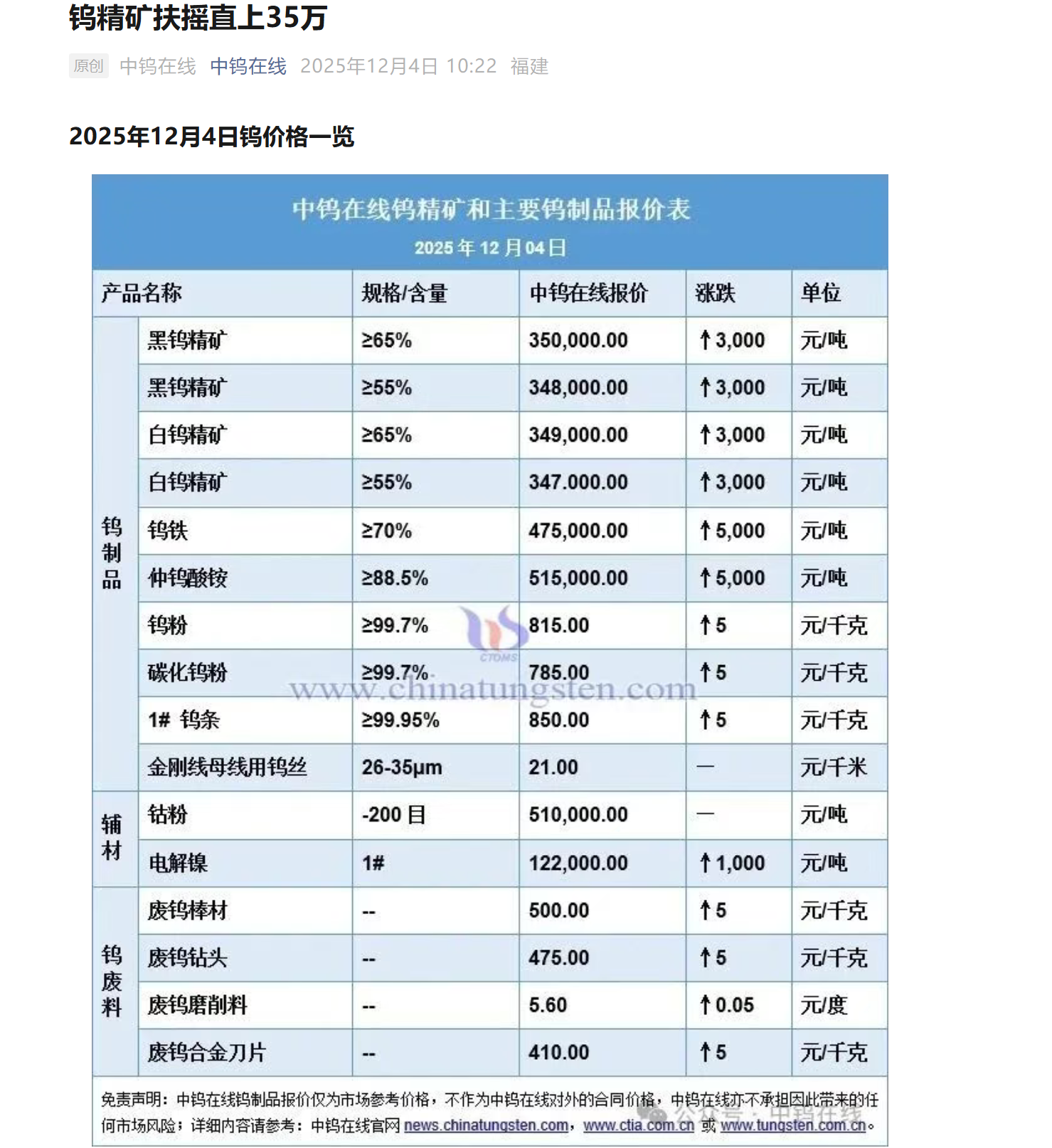 钨价狂飙至35万,四家公司最受益,其中一家2倍空间、严重低估!