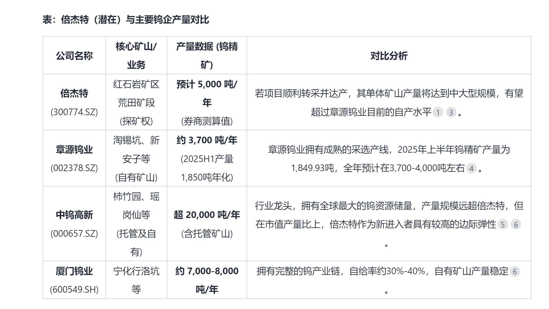 倍杰特:刚收购矿,预计 5,000 吨/年;市值70亿