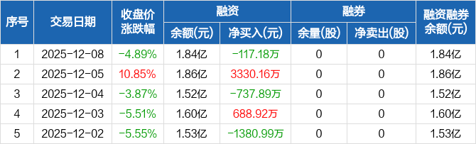 倍杰特:融资净偿还117.18万元,融资余额1.84亿元(12-08)