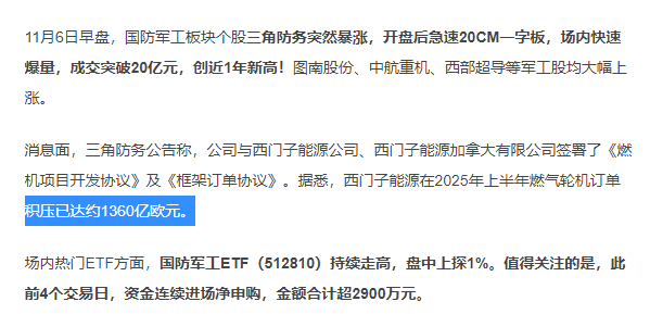 1360亿欧元。西门子能源在2025年上半年燃气轮机订单积压已达约1360亿欧元