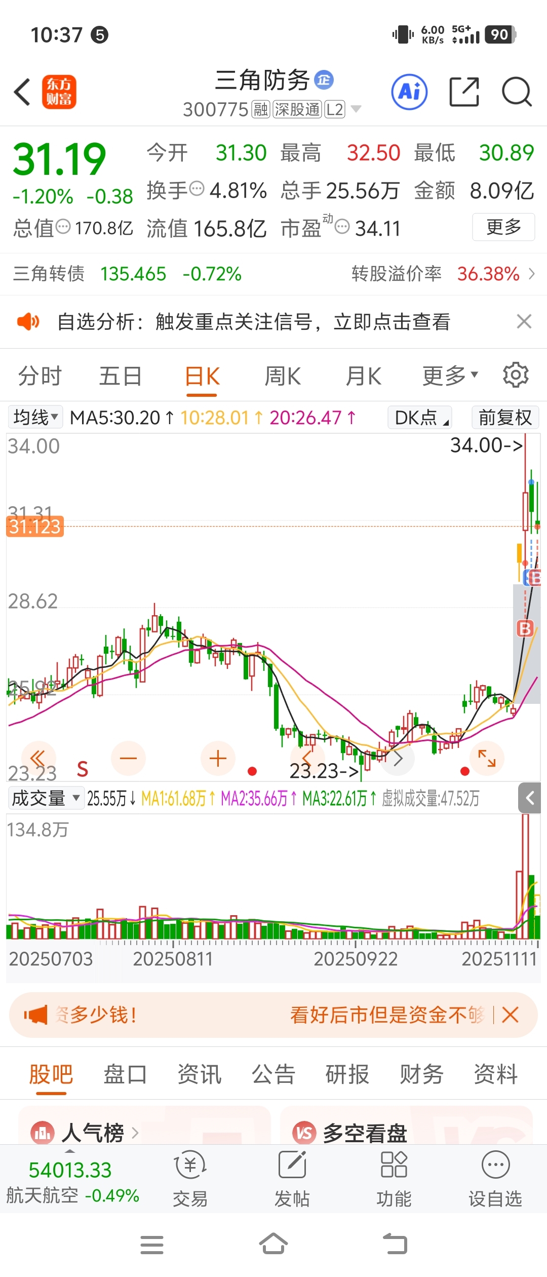 $三角防务(SZ300775)$ 继续t