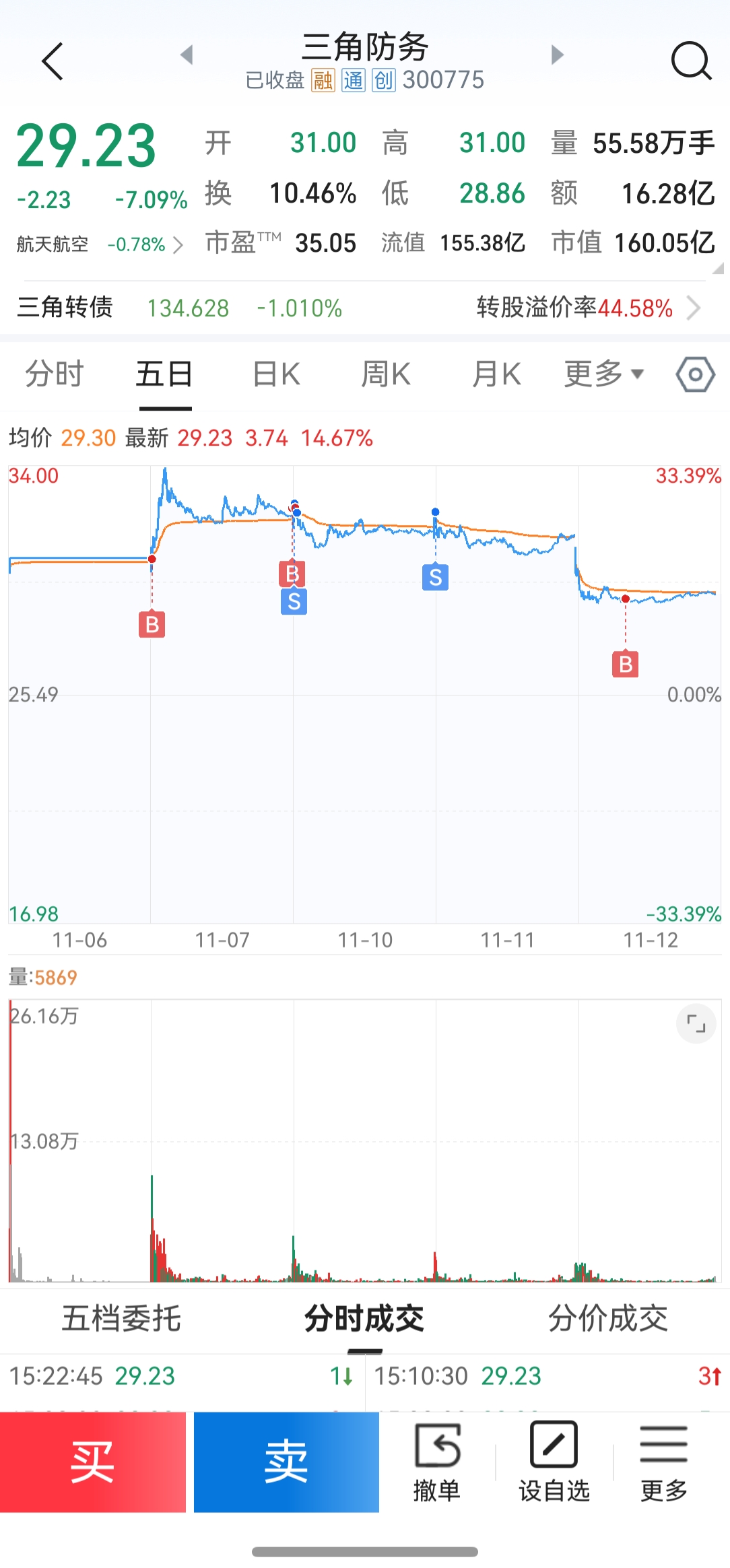 $三角防务(SZ300775)$ 感谢主力砸盘