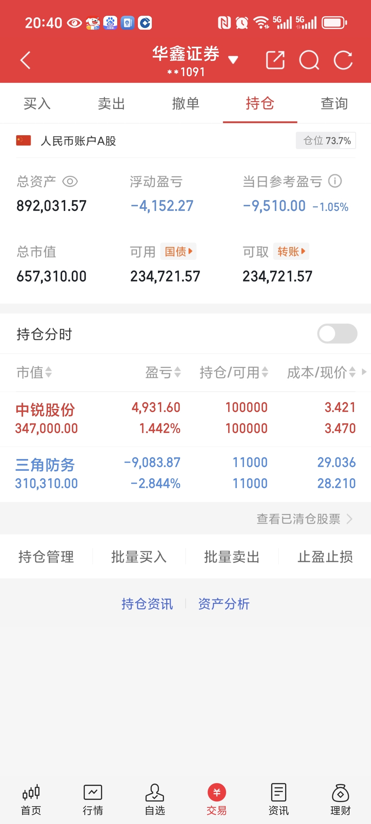 11月26日-记录第111天。持:中锐股份,三角防务。免责声明:本文内容为个人记