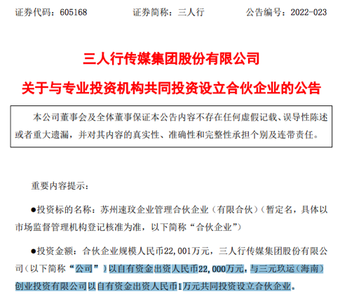 但同年3月,双方再次宣布联手,拟由三人行出资2.2亿元、严建亚控股的三元资本出资1万元,共同设立苏州速玟企业管理合伙企业(有限合伙),以股权投资的形式方式投资拟上市企业。这一举动在当时即被市场解读为两家陕西本土上市公司之间的一次重要战略协同尝试,即通过设立产业基金,共同探索在硬科技领域的投资机会。