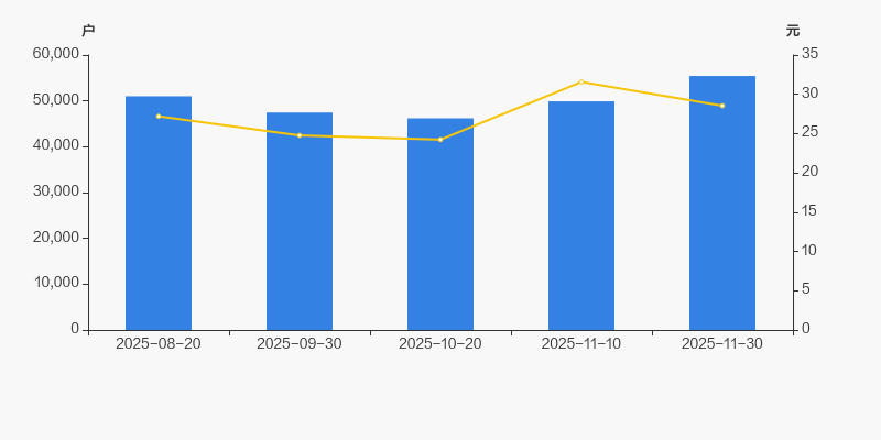 2025年8月20日至今,公司股东户数有所增长,区间涨幅为8.65%。2025年8月20日至2025年11月30日区间股价上涨4.96%。