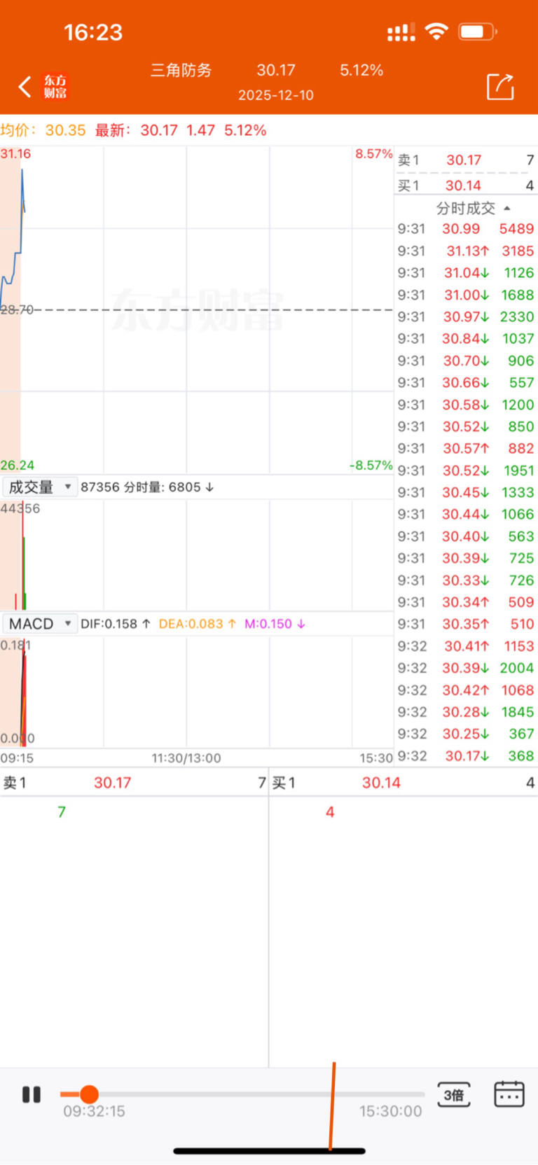 $三角防务(SZ300775)$ 一分钟哥。这个班上得太舒服,9.32准时下班