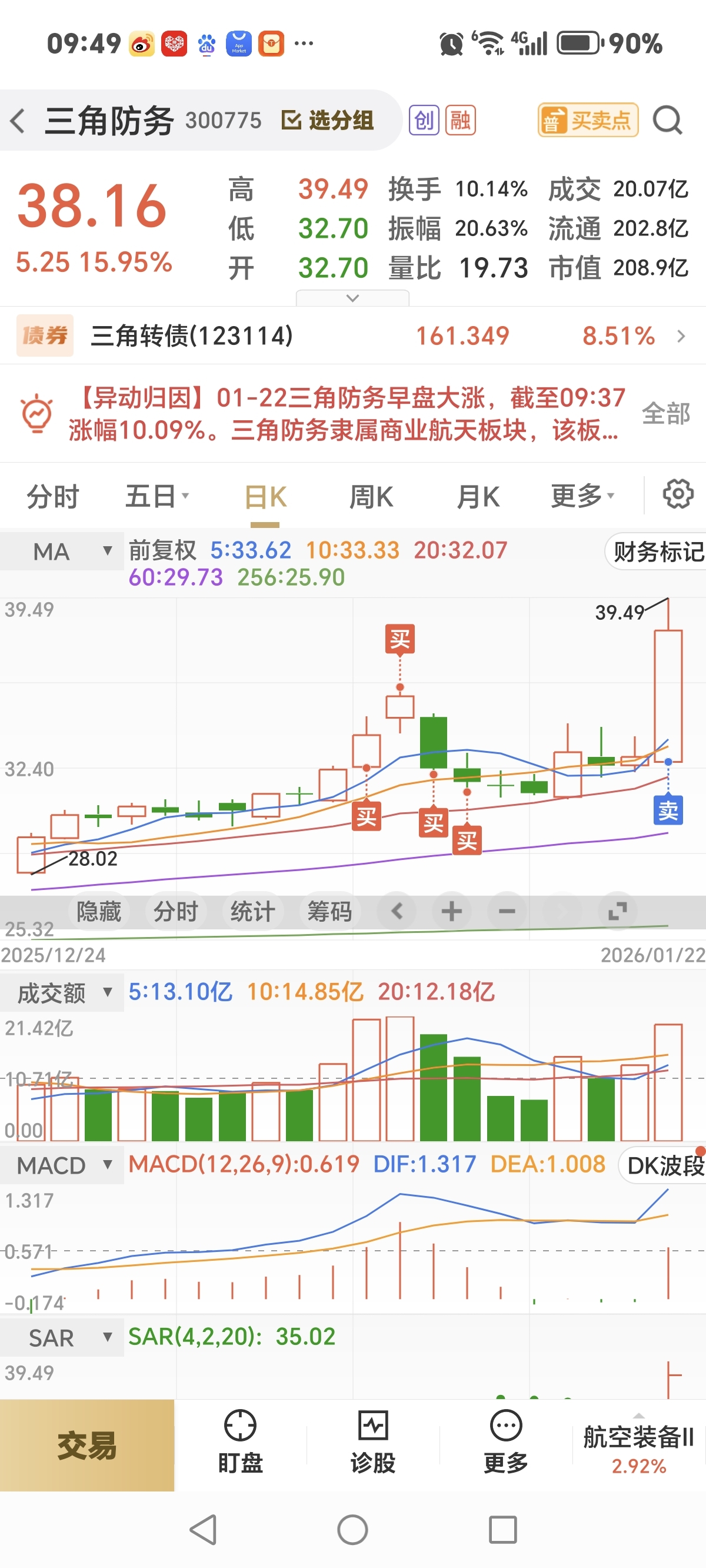 $三角防务(SZ300775)$ 坐等缩量接回