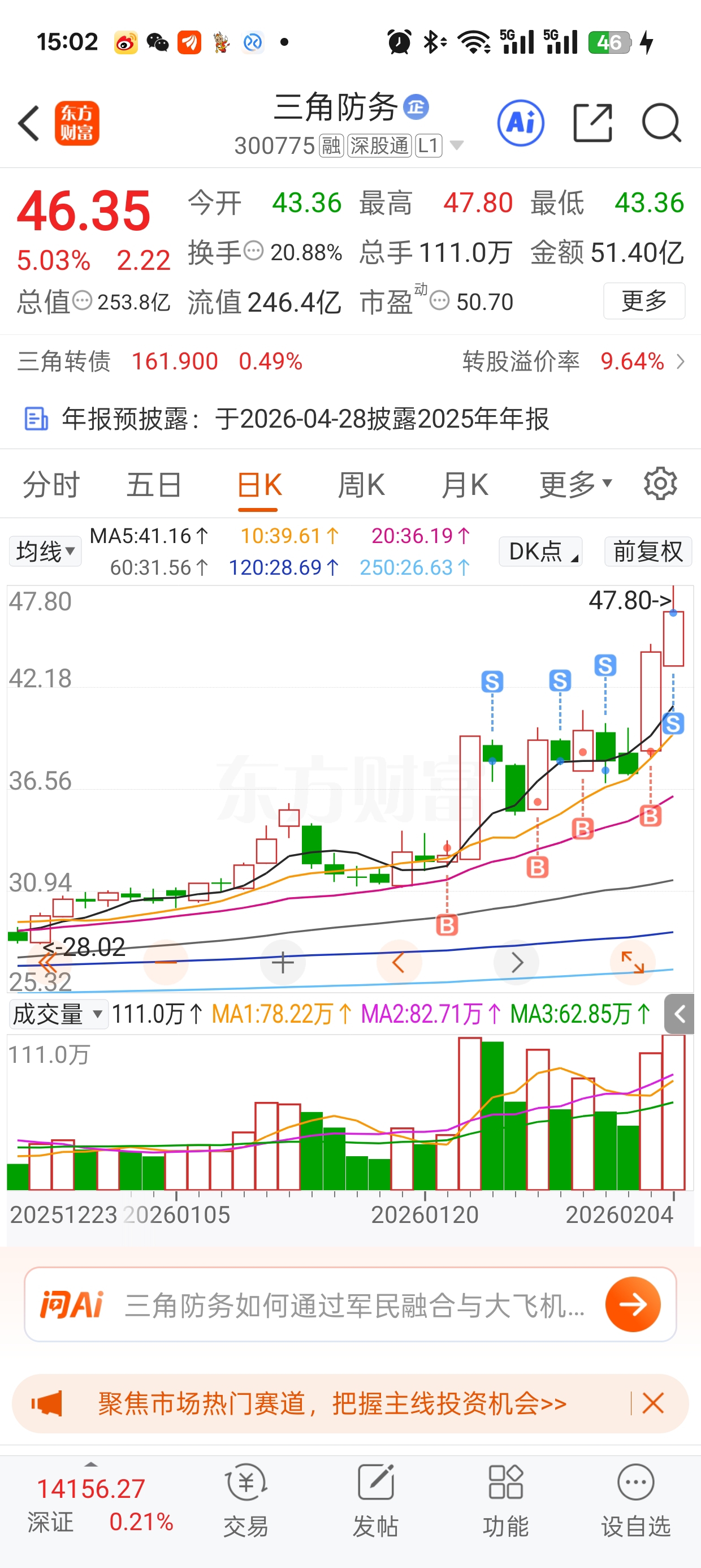$三角防务(SZ300775)$ 感觉这次要卖飞了