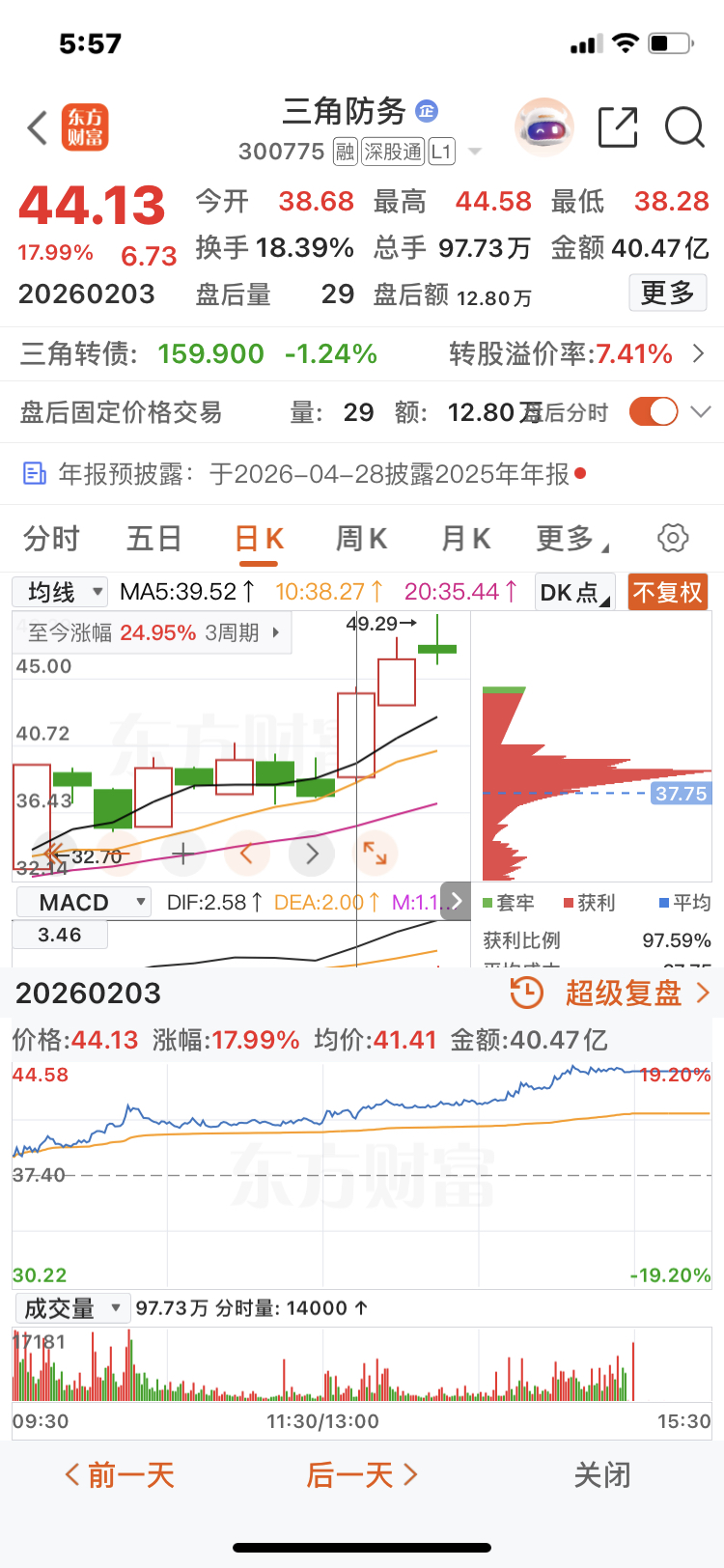 【梦“三角”,“三角梦”!】【2月6日,300775以全日最高价、“大长腿”收盘:56.08,开创历史新高!】