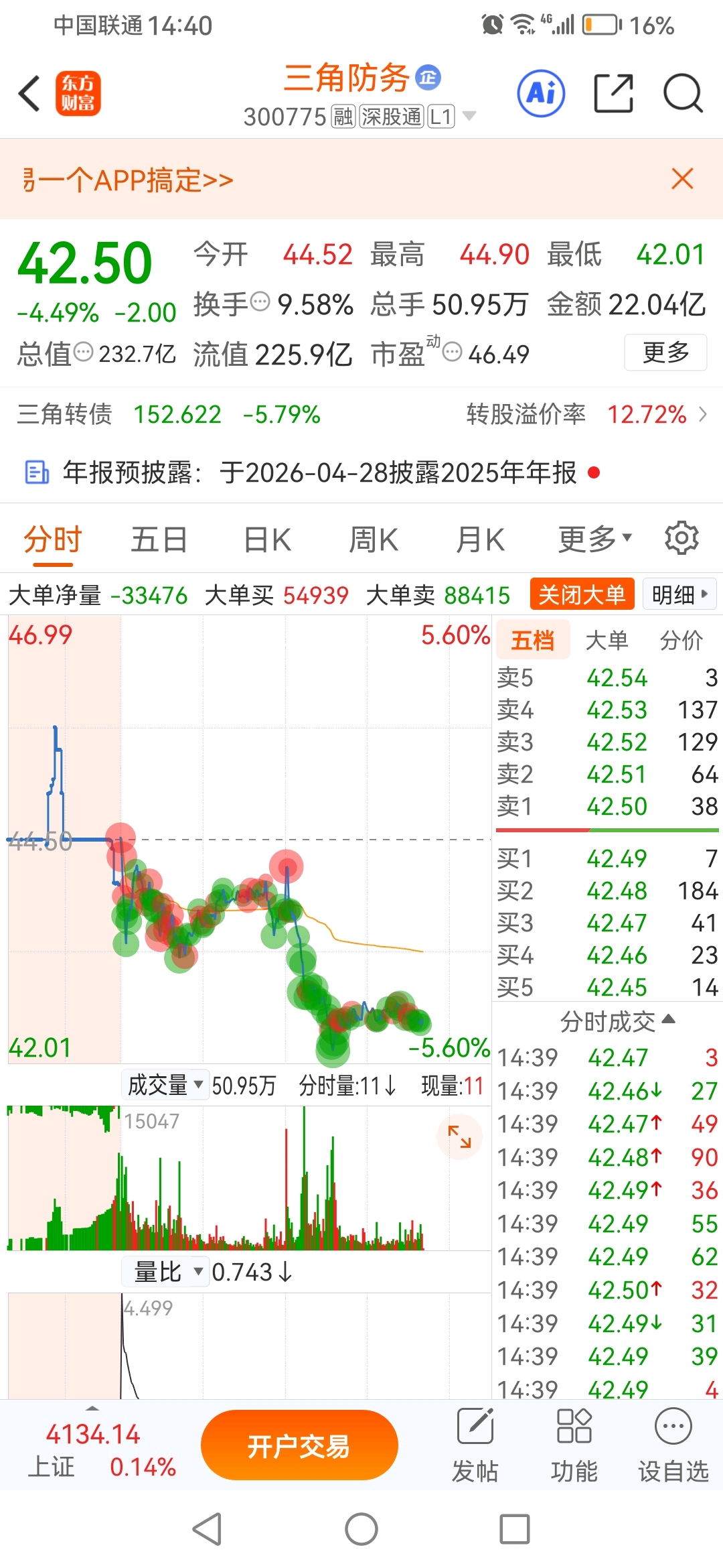 $三角防务(SZ300775)$ 全百万以上的大单砸或者说跑