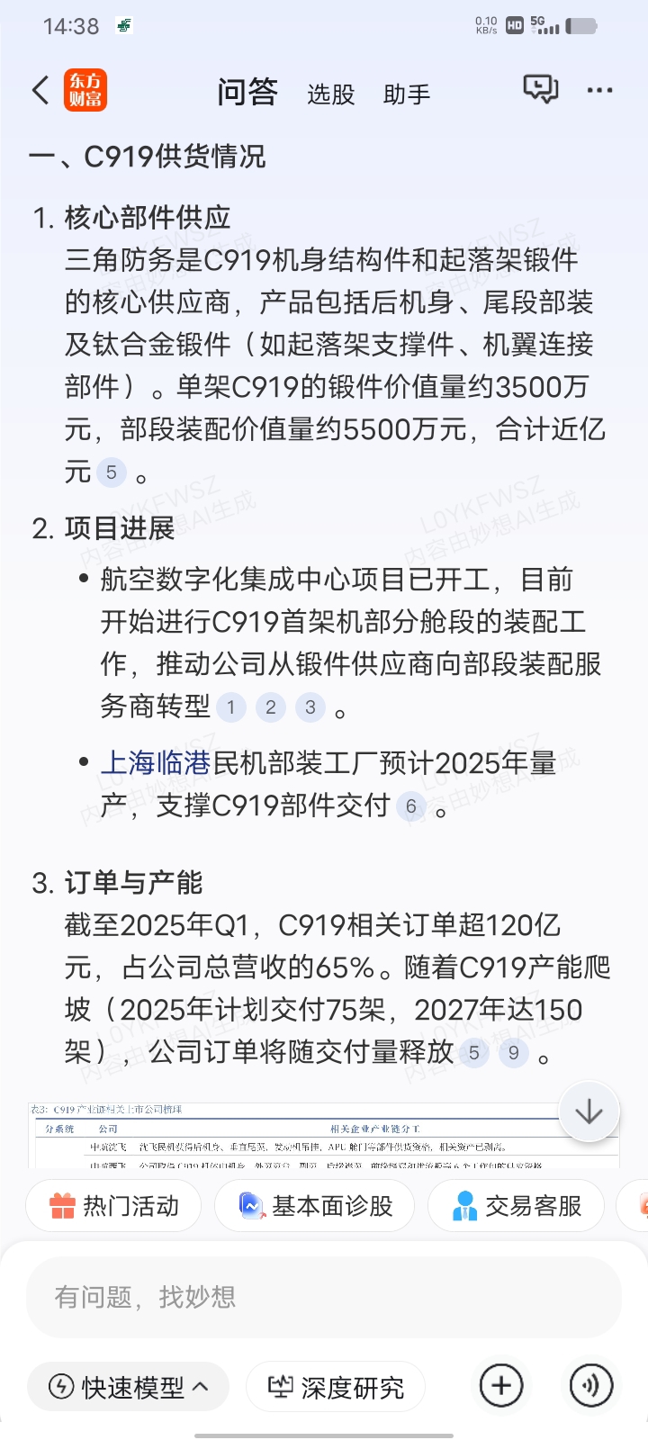 $三角防务(SZ300775)$ 光锻件C919单机供货量就超9000万元!这还不包括为国产CJ1000发动机供应配件!可查数据C909C919国内订单超1500架!而这还仅仅是大飞机的贡献的营收!算上商业航天和船舶锻造,更有西门子订单落地,三角防务未来一片光明!有理由相信他必定是2026年的大牛股之一!市值千亿只是第一步!