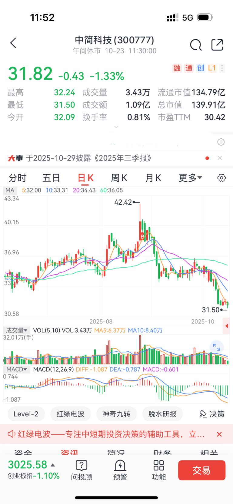 $中简科技(SZ300777)$ 大概是因为我买了你吧 不至于这样跌的