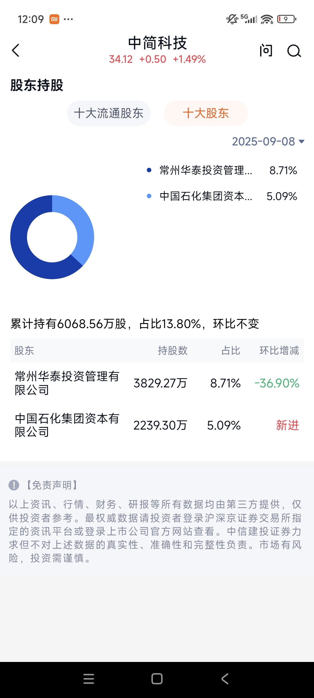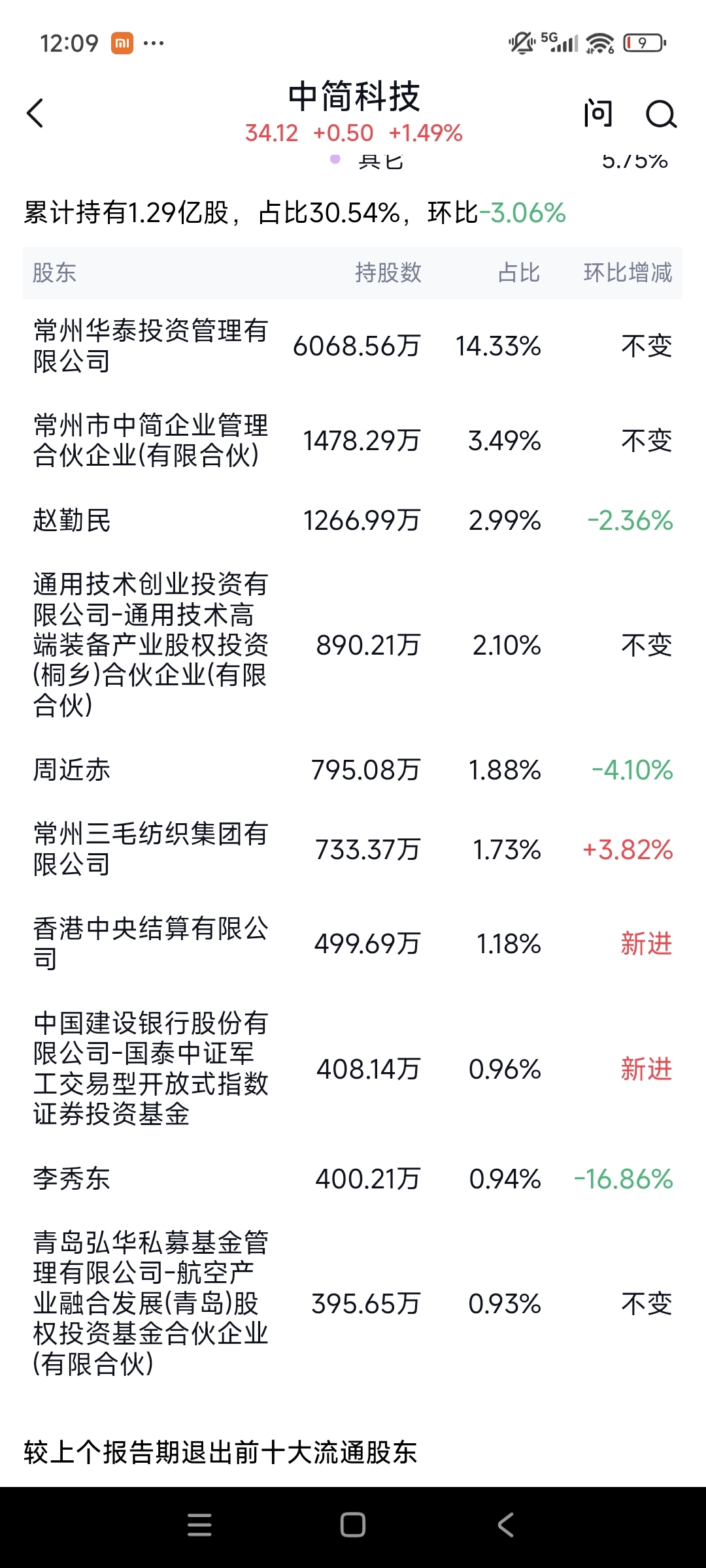 $中简科技(SZ300777)$ 前总经理温女士已减持完毕,前十大流通股已无温女士名字! 新增中国石化资本,买入两千多万股,投资者信心得到一定程度的修复!下一步期待董事长引入资深技术专家做总经理,那么中简科技算是真正走入正轨!看好中简科技!