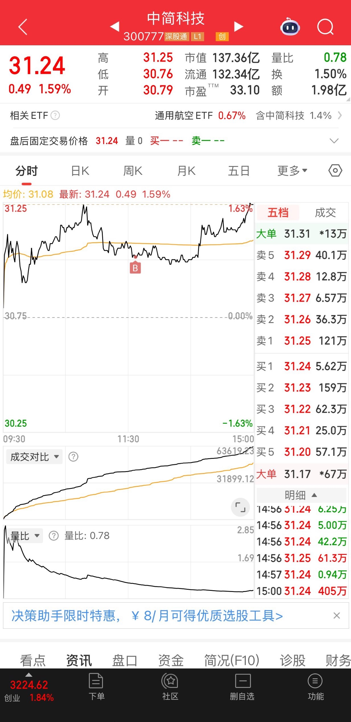 $中简科技(SZ300777)$ 已入 目测明天九点半有惊喜