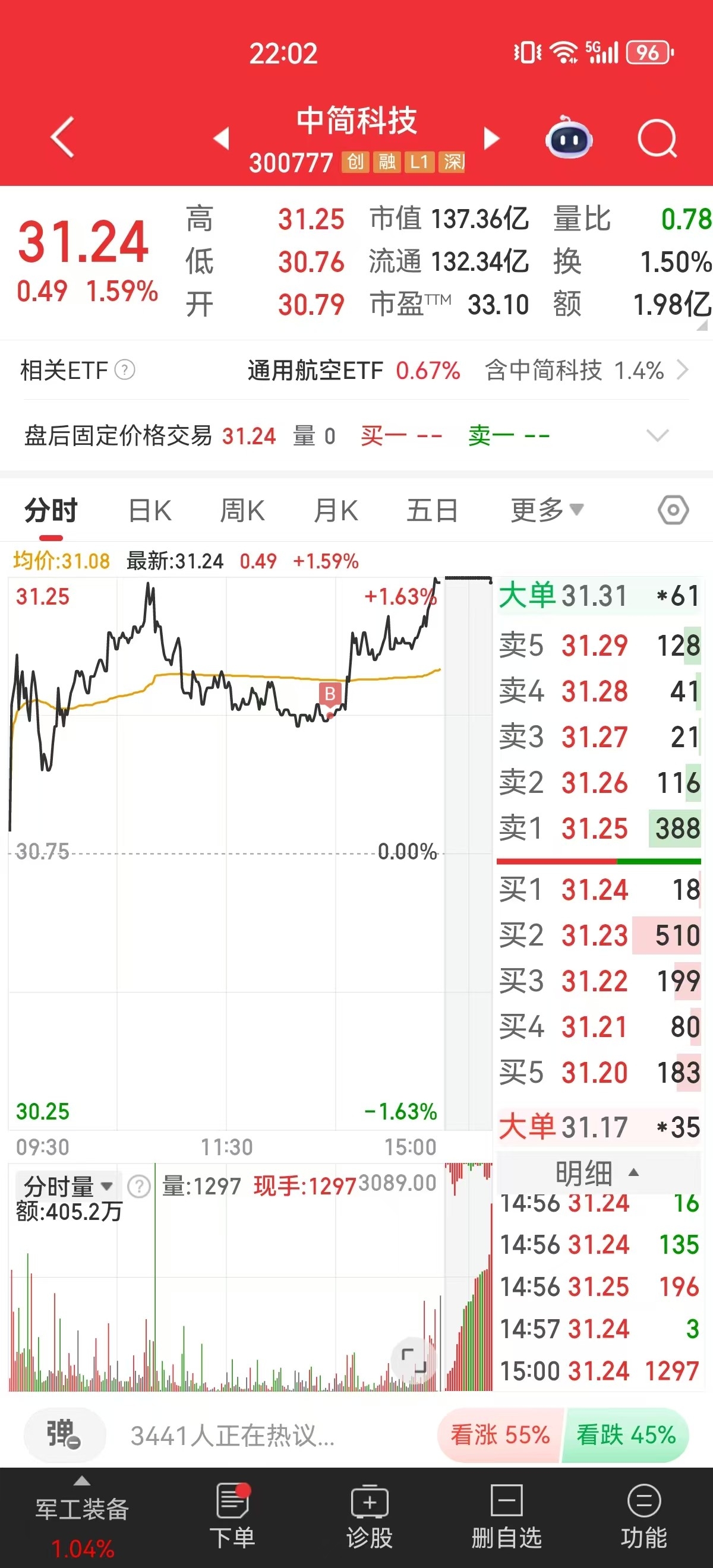 下午低吸300777中简科技,军工装备+商业航空+合同签订,底部两天筑底,今日试