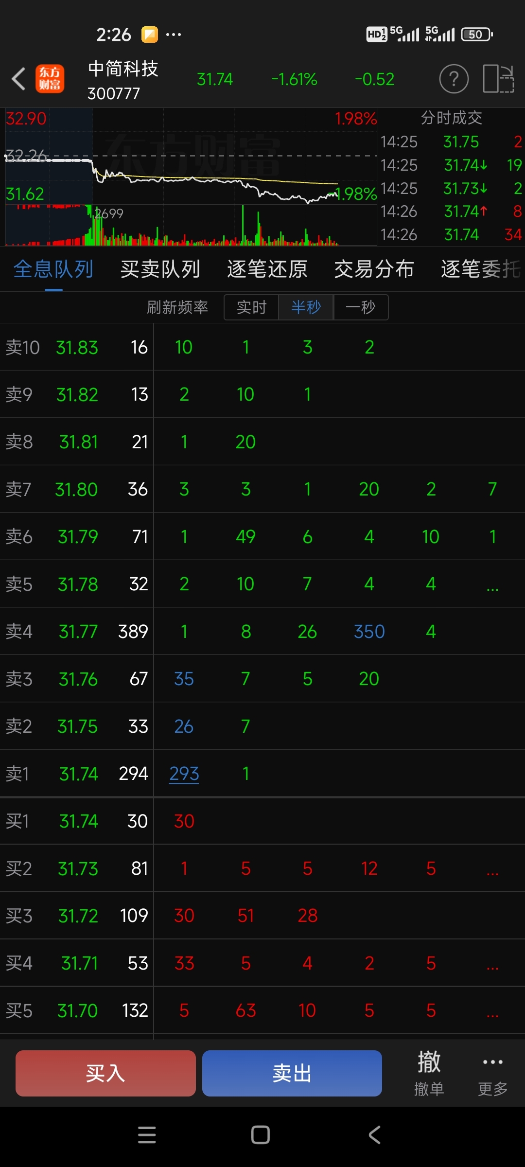 $中简科技(SZ300777)$ 主力压单让散户吃他的单子