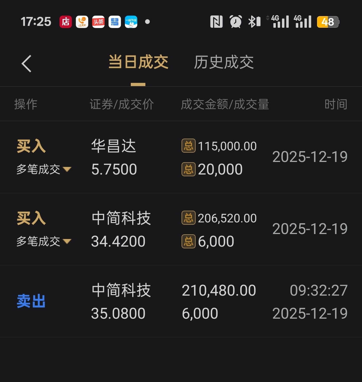 $中简科技(SZ300777)$ 卖出去了,又买进回了,6毛钱差价也做。