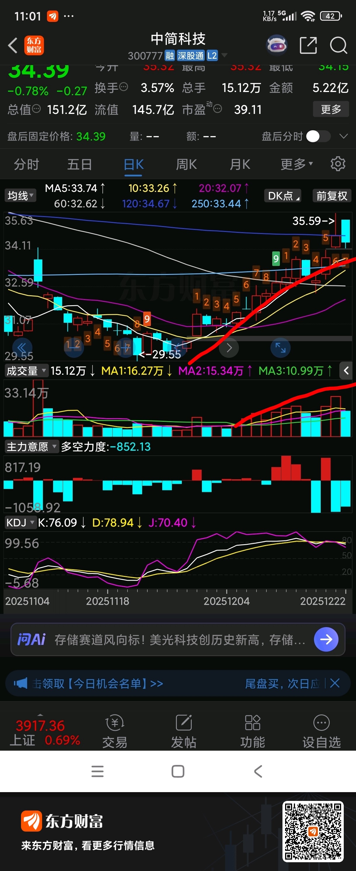 $中简科技(SZ300777)$ 能否走出上升趋势?