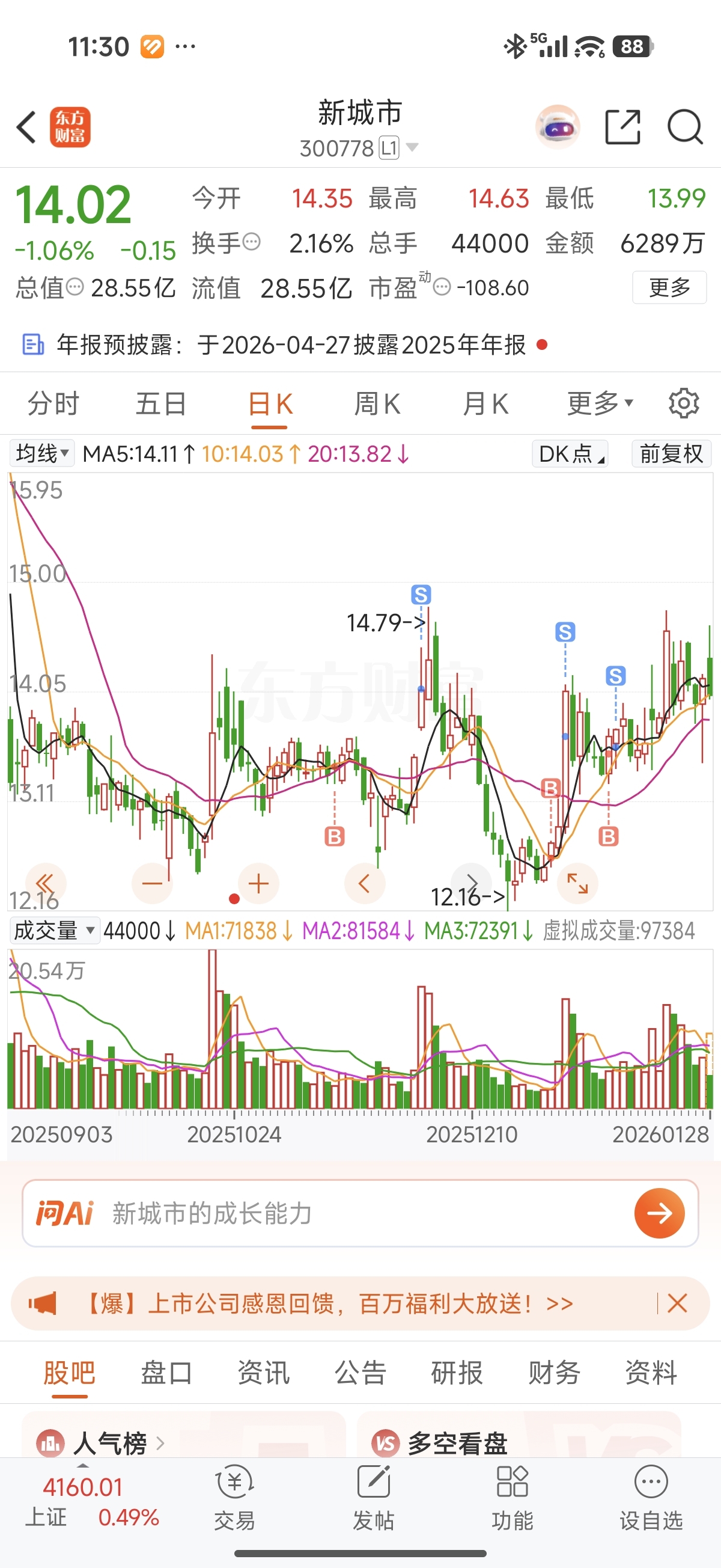 $新城市(SZ300778)$ 是个适合做t的好股,可惜我最近去买业绩好的股了,不然一直买