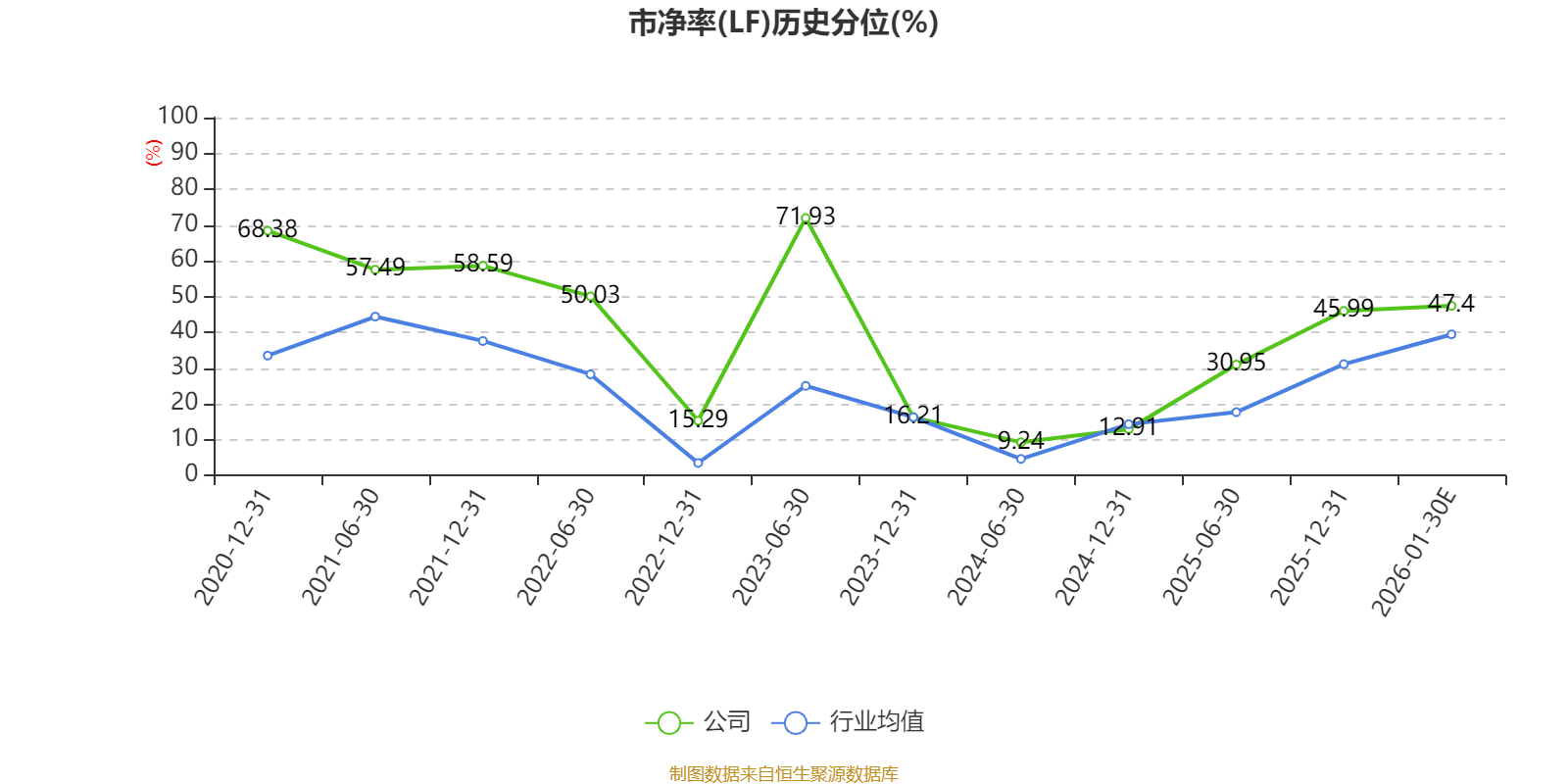 市盈率、市净率为负时,不显示当期分位数,会导致折线图中断。