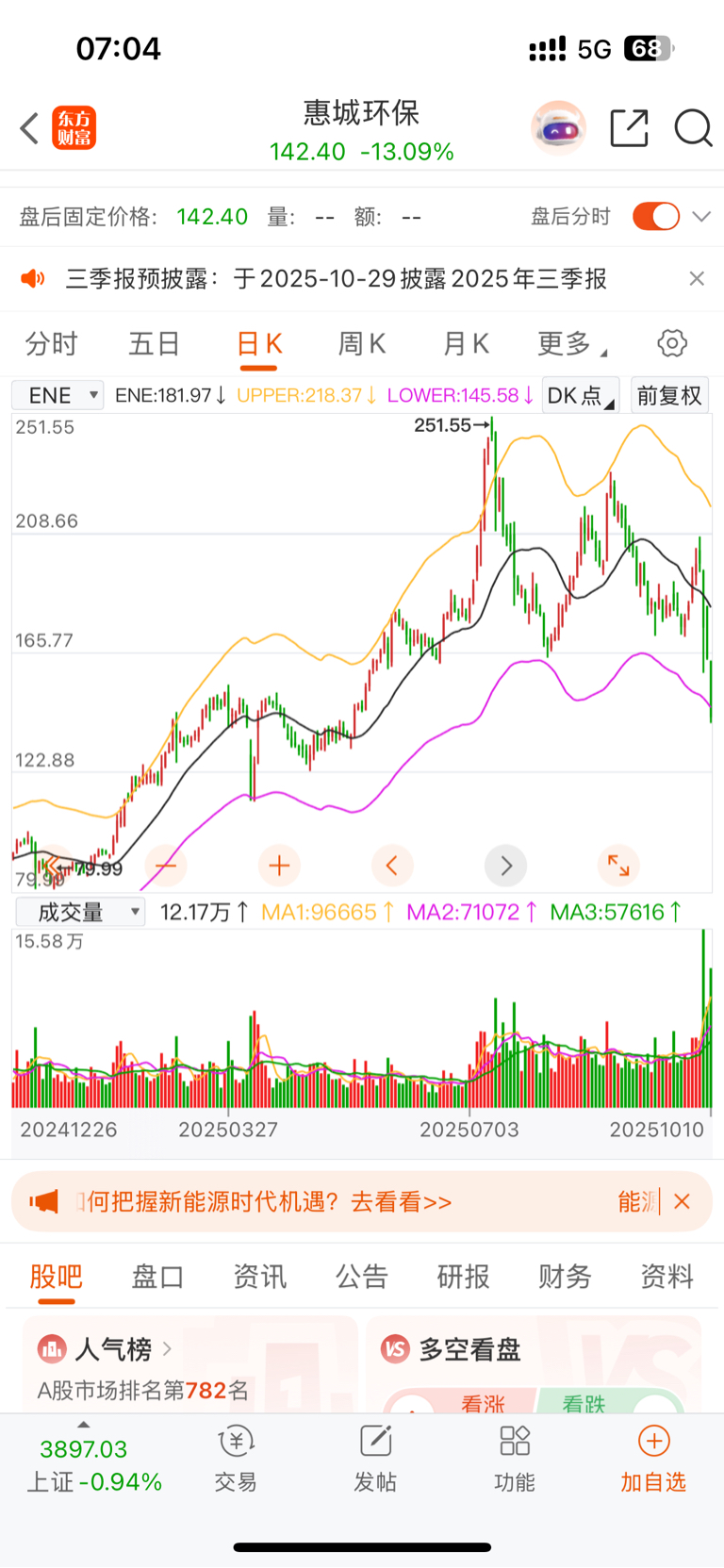 $惠城环保(SZ300779)$ 我只想问问是不是和4.7号一样,属于打ENE下轨的超卖
