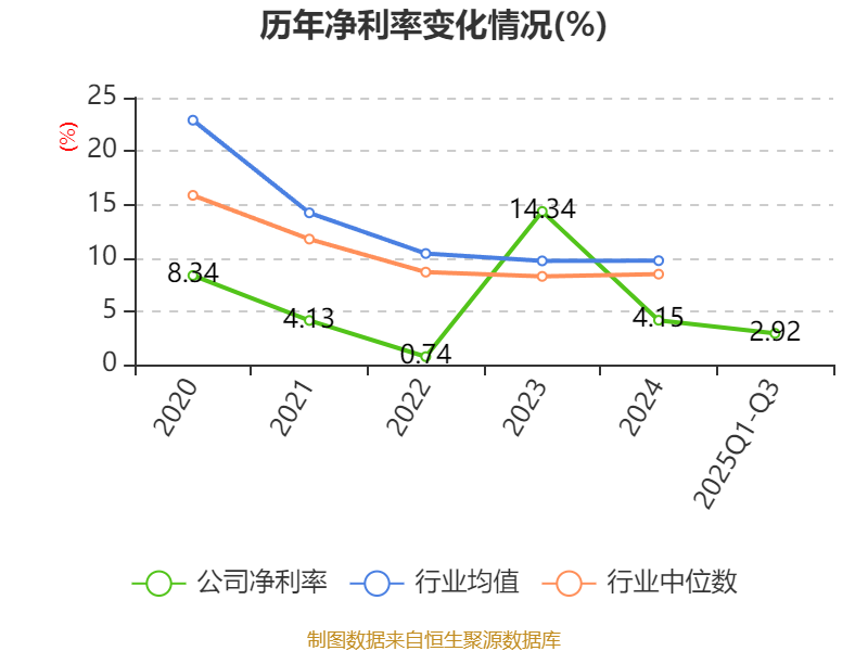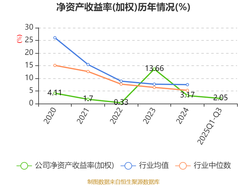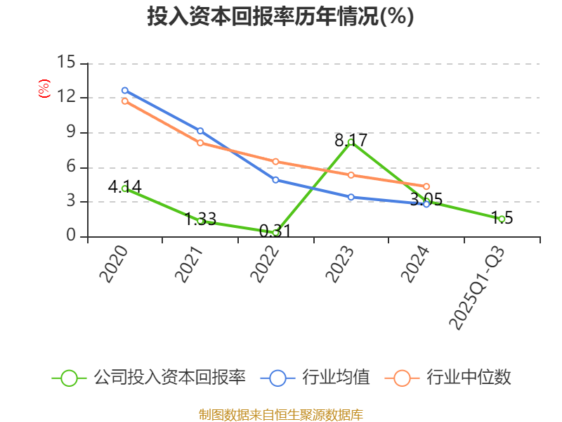 盈利能力方面, 2025年前三季度公司加权平均净资产收益率为2.05%,同比下降1.11个百分点。公司2025年前三季度投入资本回报率为1.5%,较上年同期下降1.13个百分点。