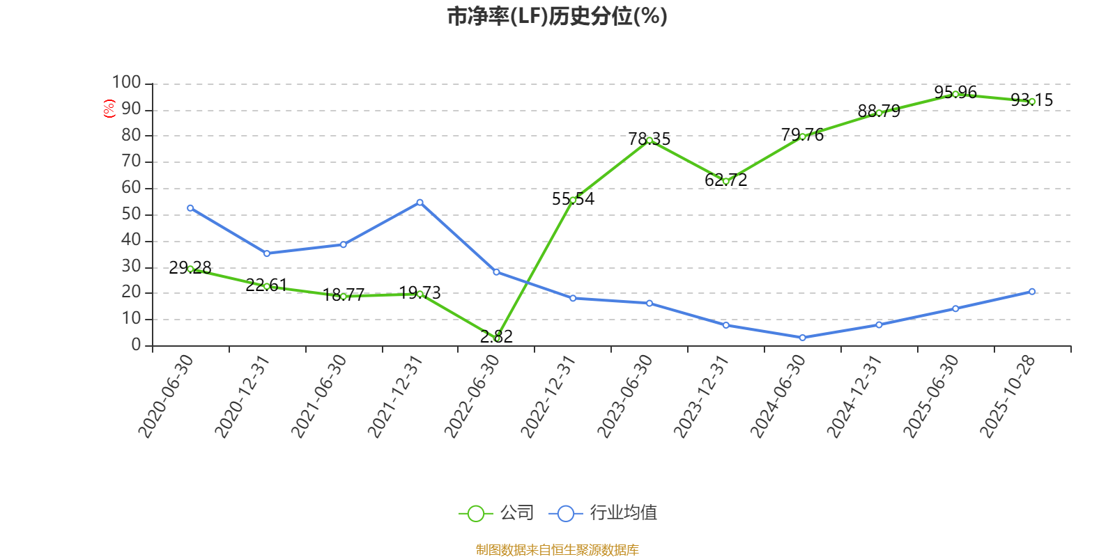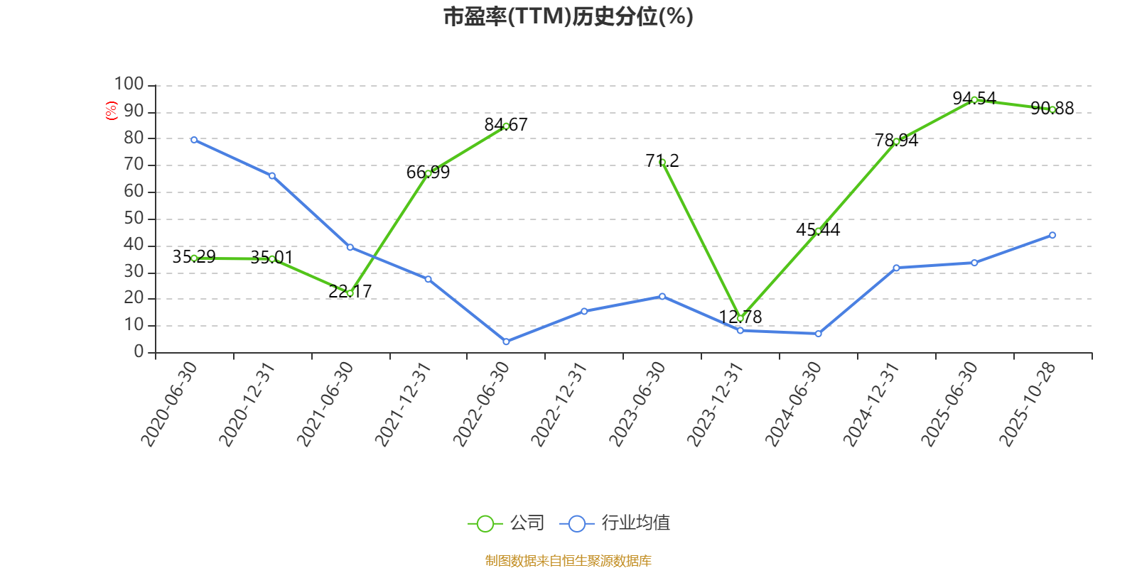 市盈率、市净率为负时,不显示当期分位数,会导致折线图中断。