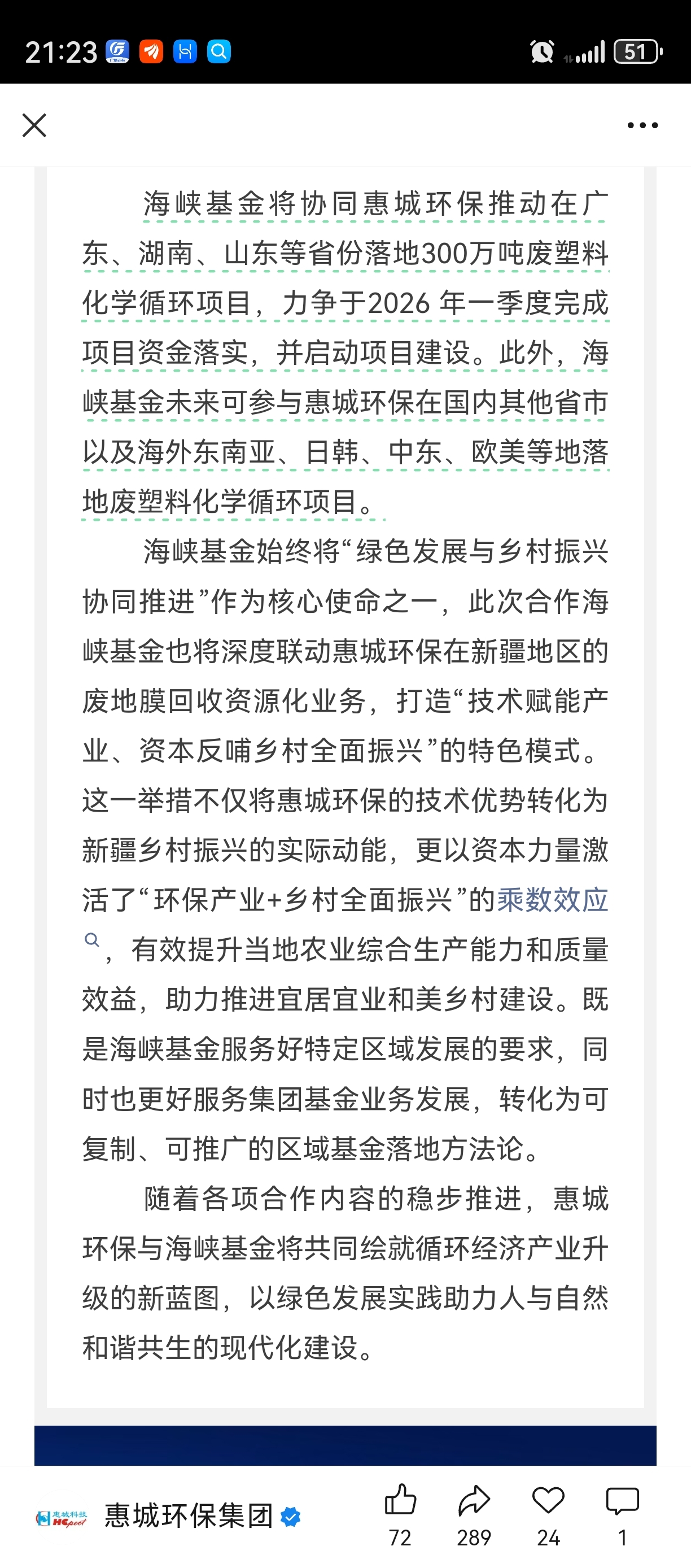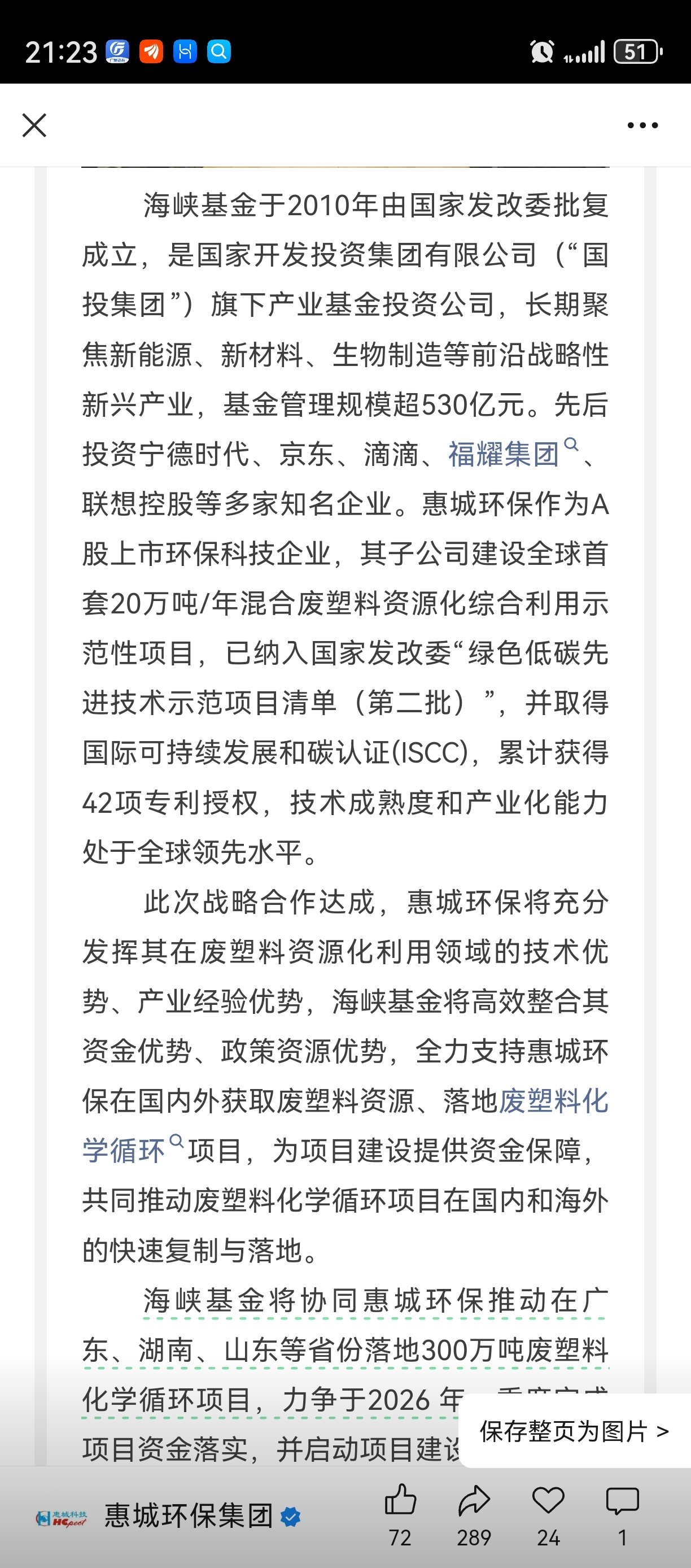 $惠城环保(SZ300779)$ #强势机会# #实盘记录# #投资干货# 内容很丰富啊,国资入股,保证项目的推进。有300万吨项目资金落实,有项目出海计划,兄弟们下周一扶稳坐好。
