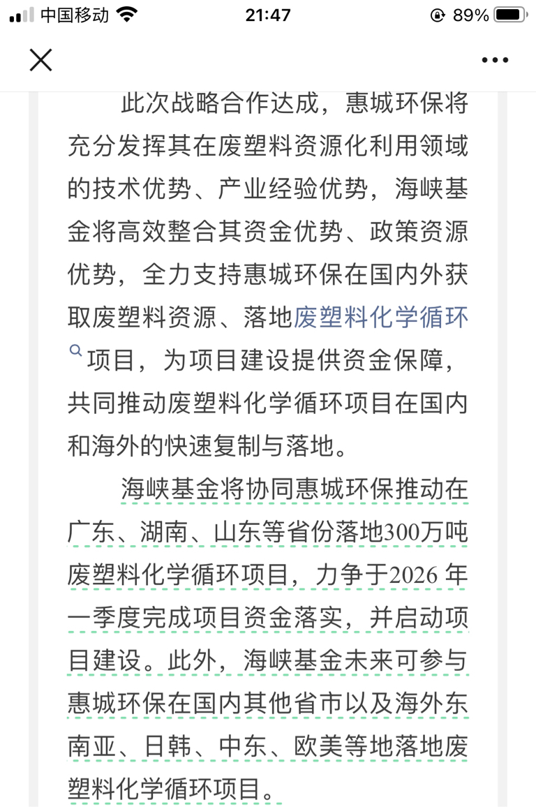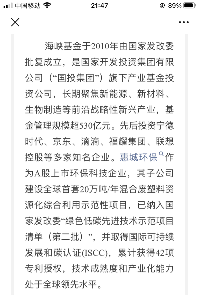 惠城环保与海峡基金达成战略合作。
