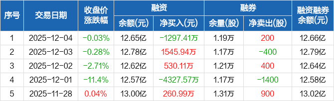 惠城环保:融资净偿还1297.41万元,融资余额12.65亿元(12-04)