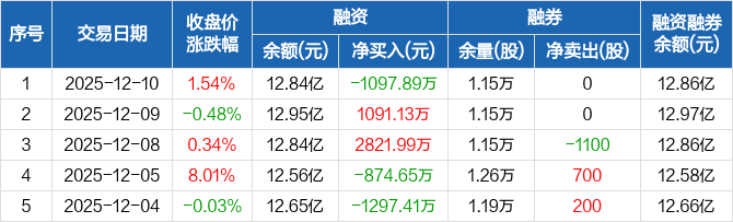 惠城环保:融资净偿还1097.89万元,融资余额12.84亿元(12-10)