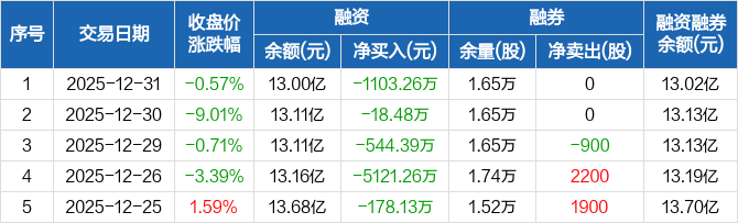 惠城环保:连续5日融资净偿还累计6965.52万元(12-31)