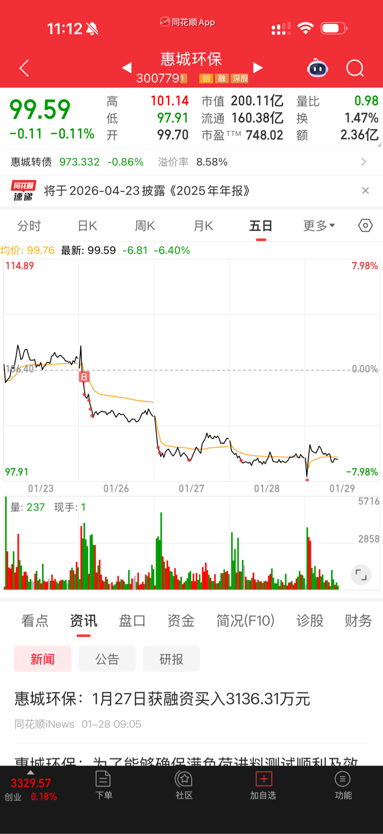 $惠城环保(SZ300779)$ 这个还有救吗,我126进去的,现在100都不到了,一路补一路跌,目前成本112,还能解套吗,不行我就割肉了
