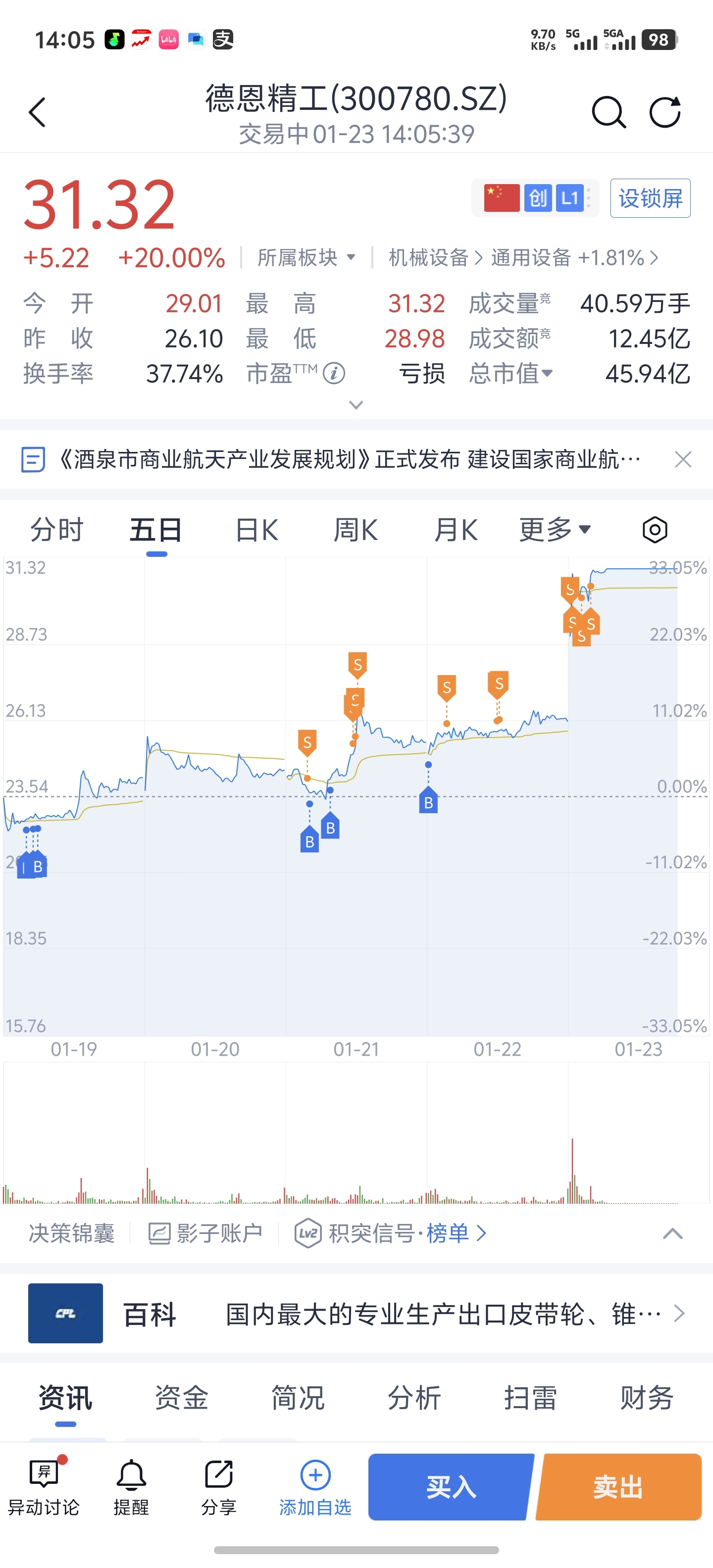 $德恩精工(SZ300780)$ 这周从周一玩到周五全部清光,后续依然看好,但下周我看调整为主,所以先出来了。