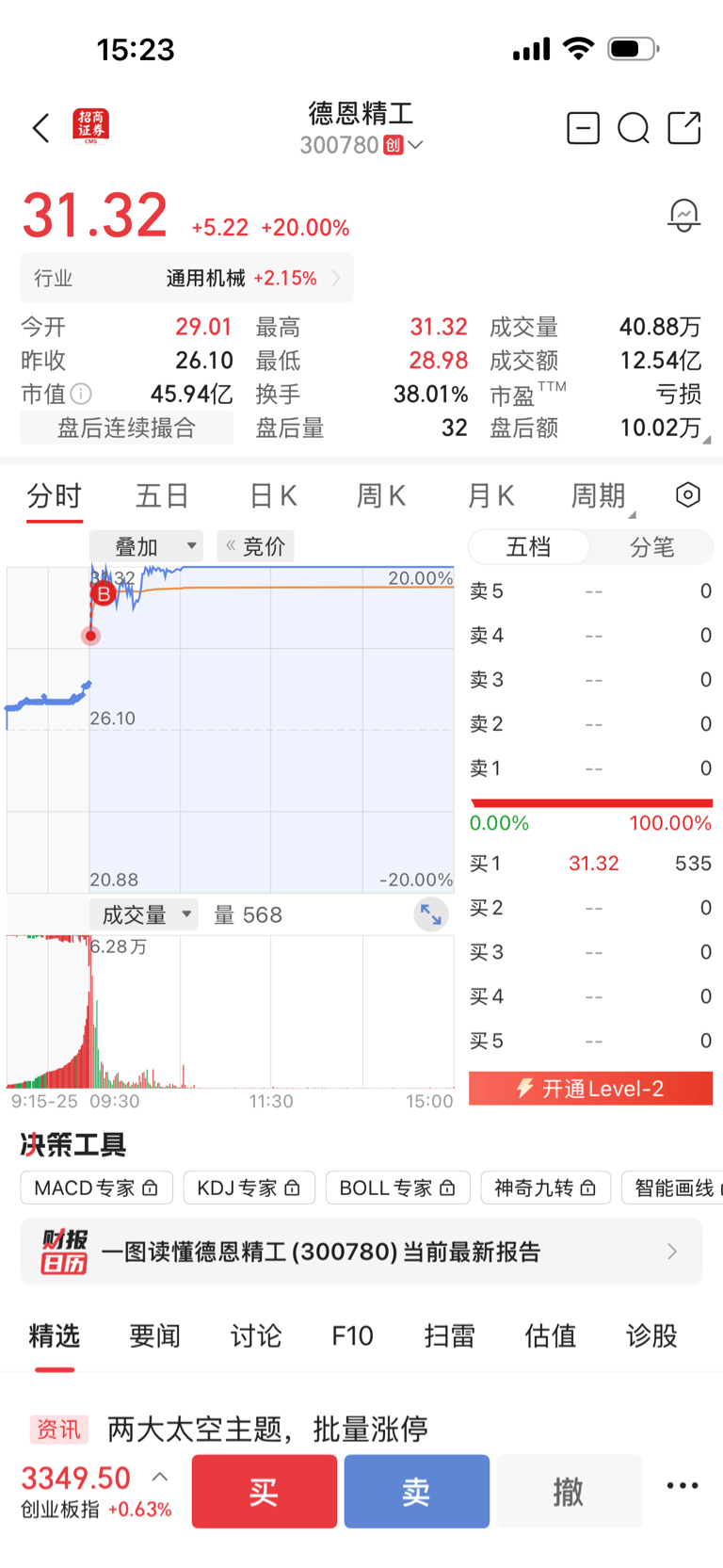$德恩精工(SZ300780)$ 恭喜上车的朋友,下周一拿稳了不要卖,继续吃大肉。