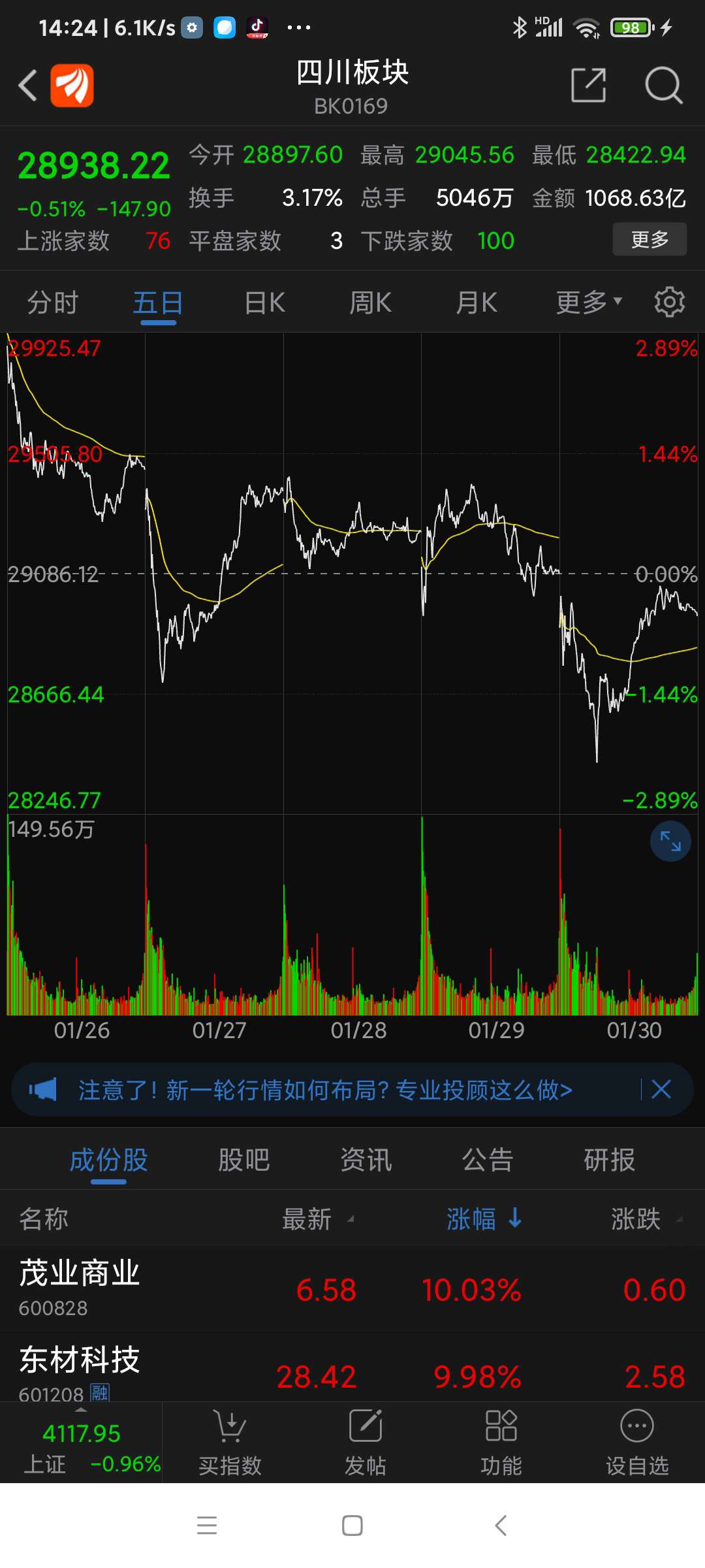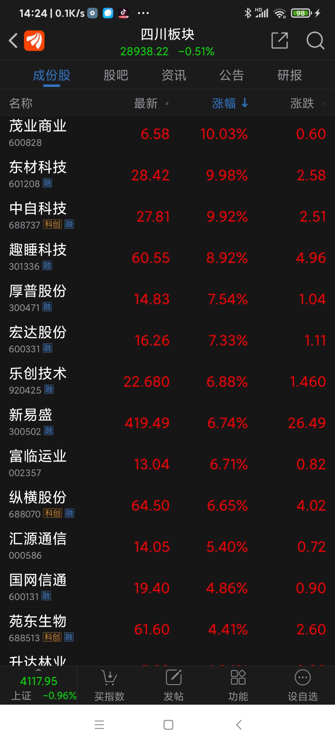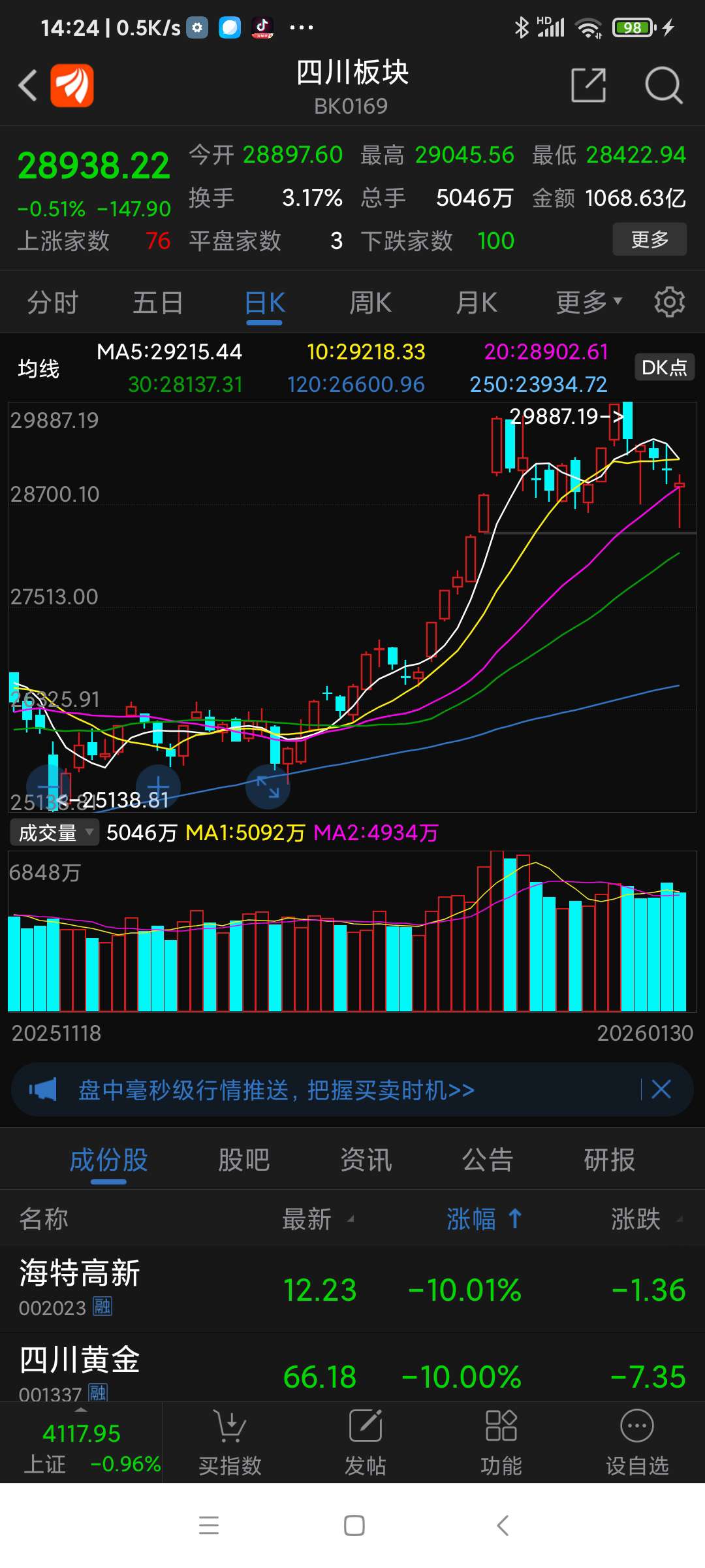 四川板块26年元月涨幅8.15%,德恩精工名列四川板块(共有179个股票)第二名