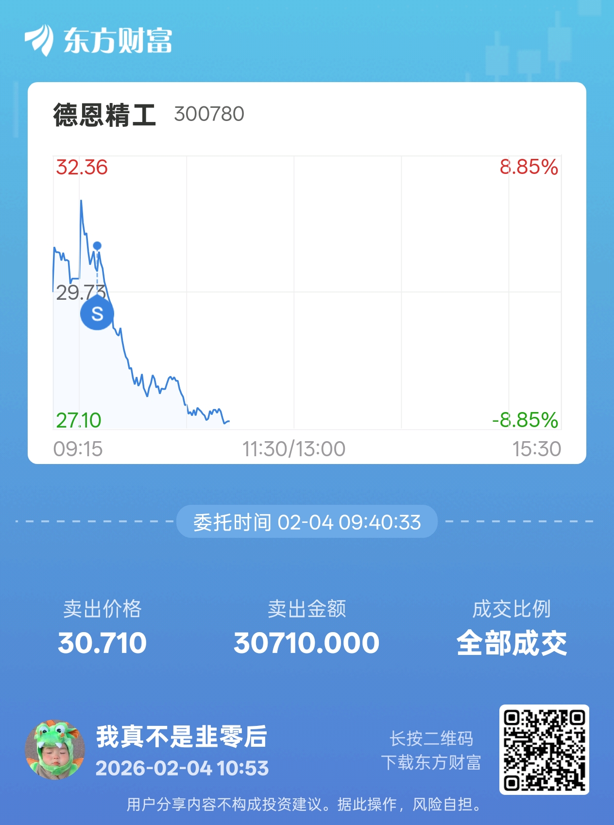 温馨提示: 1.根据《证券法》规定,禁止编造、传播虚假信息或者误导性信息,扰乱证券市场;2.用户在本社区发表的所有资料、言论等仅代表个人观点,与本网站立场无关,不对您构成任何投资建议。用户应基于自己的独立判断,自行决定证券投资并承担相应风险。《东方财富社区管理规定》
