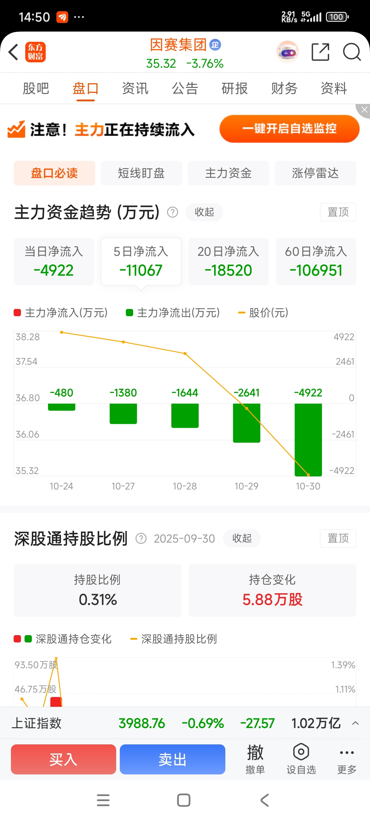 $因赛集团(SZ300781)$ 好台阶!猜一下,明天仍高开低走,主力继续大逃亡