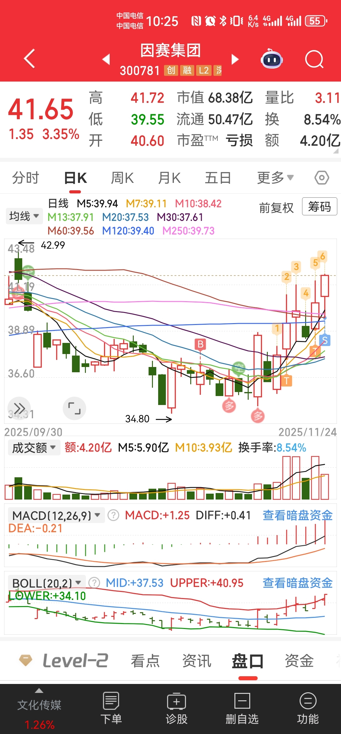 $因赛集团(SZ300781)$ 套的好辛苦,终于出来了,先高抛后面再接