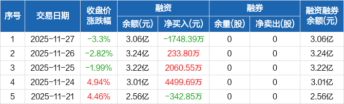 因赛集团:融资净偿还1748.39万元,融资余额3.06亿元(11-27)
