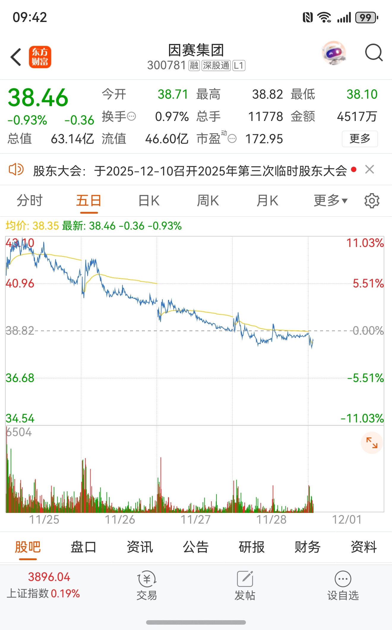 $因赛集团(SZ300781)$ 这是股票吗?行情好的时候涨一点点,低迷一点点就一路向下。