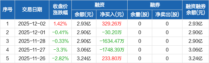 因赛集团:融资净买入329.26万元,融资余额2.93亿元(12-02)