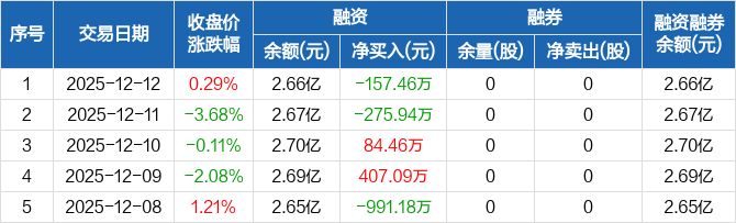 因赛集团:融资净偿还157.46万元,融资余额2.66亿元(12-12)