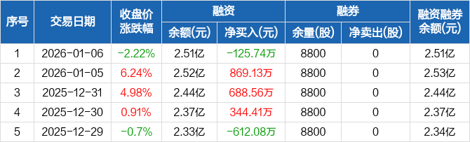 因赛集团:融资净偿还125.74万元,融资余额2.51亿元(01-06)