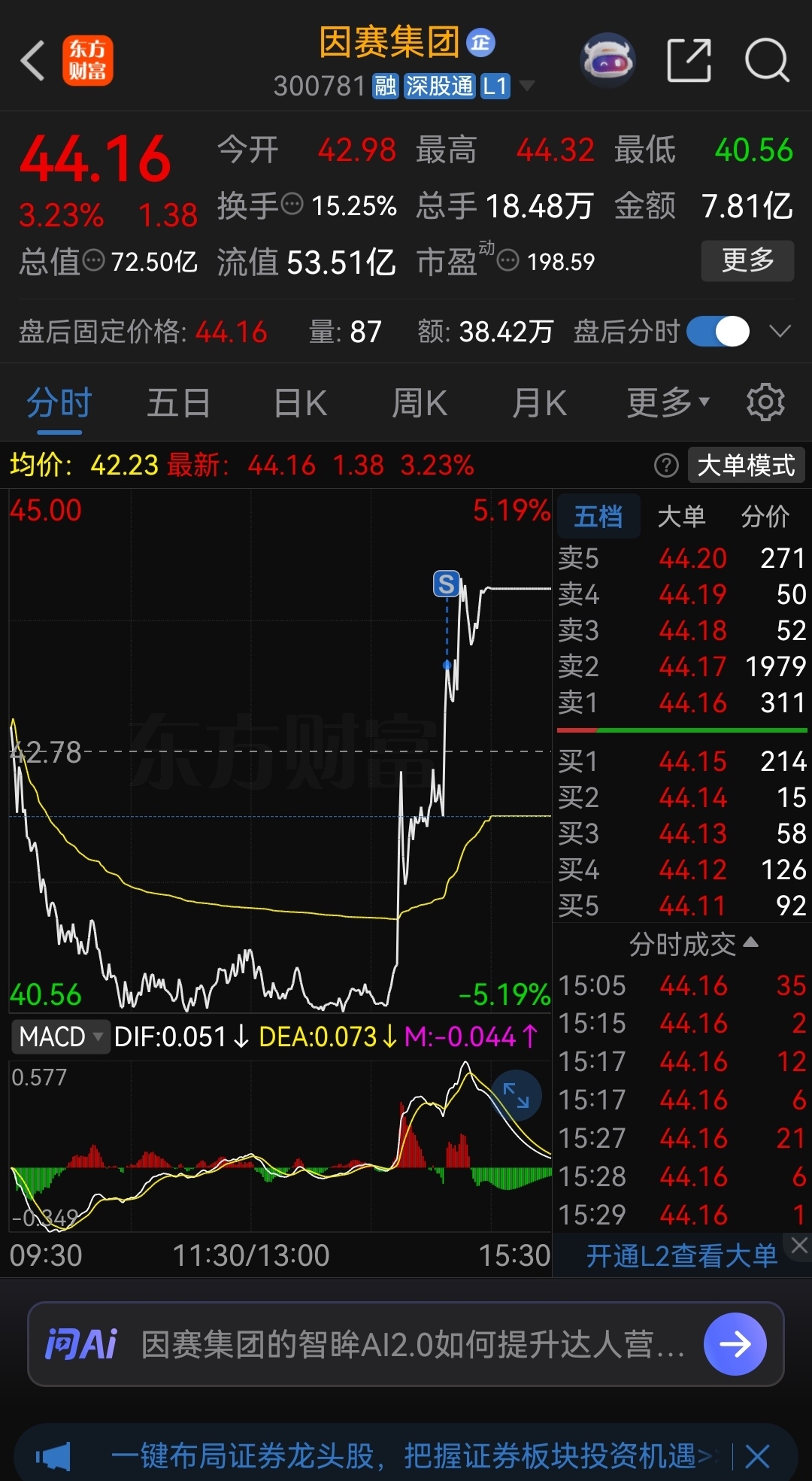 $因赛集团(SZ300781)$ 清了一部分,成本42.2