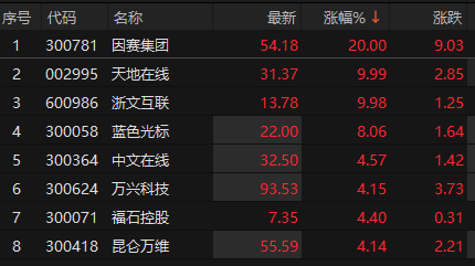 Web3.0概念股表现强势 因赛集团20cm涨停