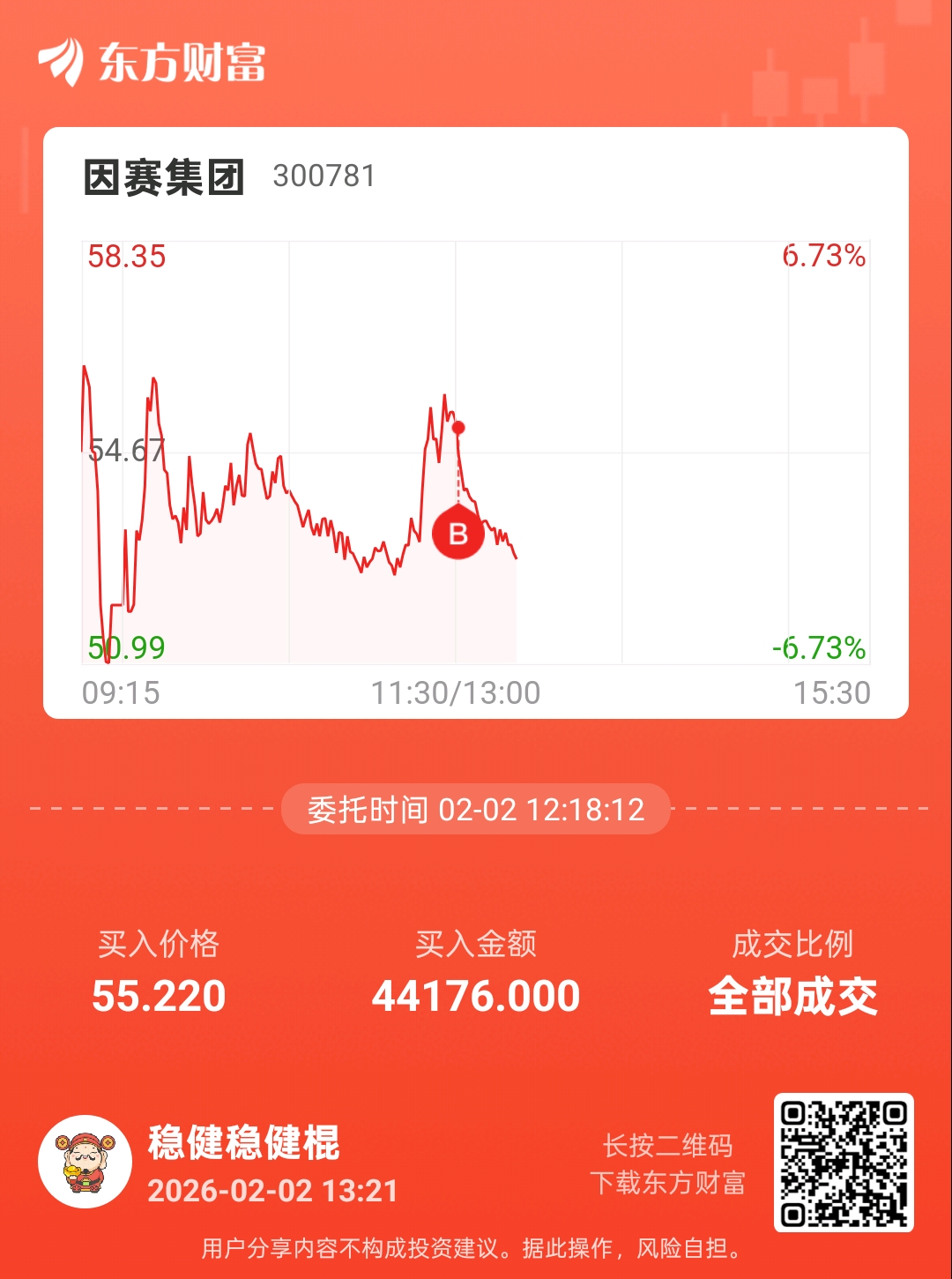 温馨提示: 1.根据《证券法》规定,禁止编造、传播虚假信息或者误导性信息,扰乱证券市场;2.用户在本社区发表的所有资料、言论等仅代表个人观点,与本网站立场无关,不对您构成任何投资建议。用户应基于自己的独立判断,自行决定证券投资并承担相应风险。《东方财富社区管理规定》