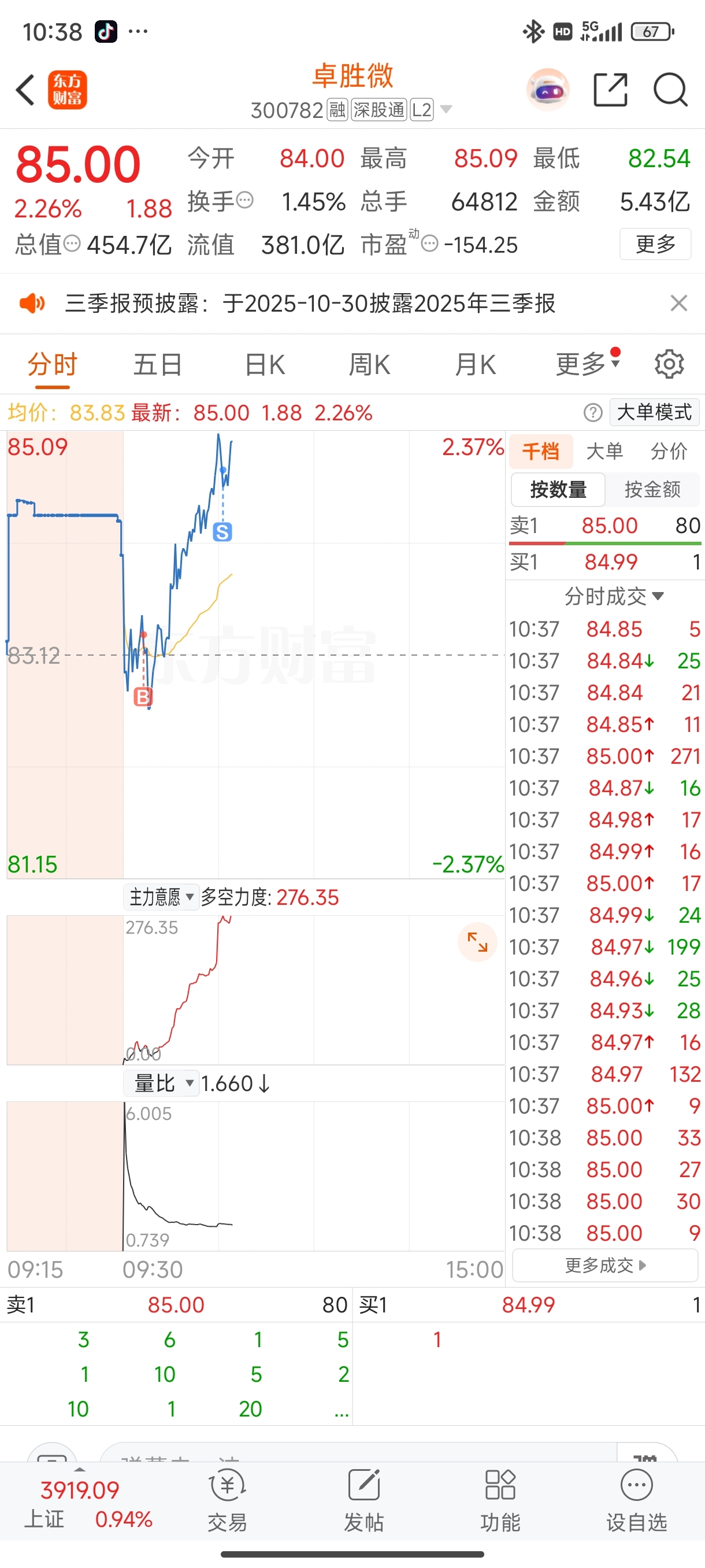 $卓胜微(SZ300782)$ 卖飞了